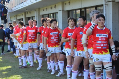 しかし、このまま離されまいと敵も必死のアタック。攻める栗田をとどめるSWはFB吉田尚史がタックル、さらに、すかさずCTBブリーがジャッカルでターンオーバー。陣地を戻した自陣10mラインアウトからも安定したバックスへの球出しから、WTB菅野が前進をはかり、さらにフォワードへ。連携ミスで相手にからまれるも、果敢に前に出るタックルが功を奏し、No.8アンディがボールを取り返してロングキック。敵陣ゴール間際まで攻め込んで、SO小原からWTB菅野へのキックパスでトライを伺うも、惜しくもスコアならず。