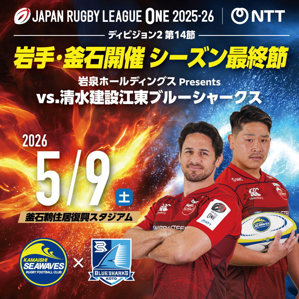 4月25日(土)「みちのくクボタ presents 日本製鉄釜石シーウェイブス vs NECグリーンロケッツ東葛」開催のお知らせ