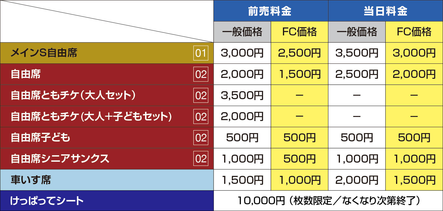 ・自由席ともチケ(大人セット)は、自由席(一般価格)2枚セットでの販売となります。