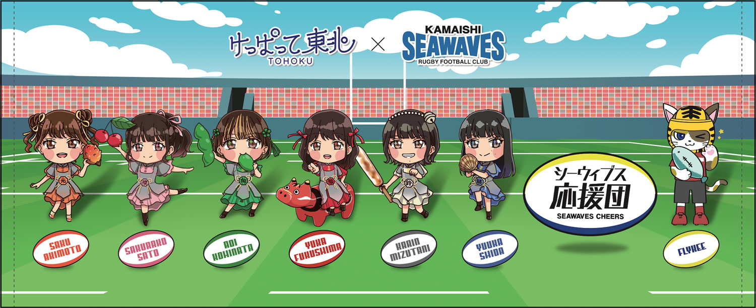 シーウェイブス応援団「けっぱって東北」がシーウェイブスホストゲームを盛り上げます!『けっぱってシート』ご購入のお客様に限定配布するフェイスタオルを使って応援しましょう!