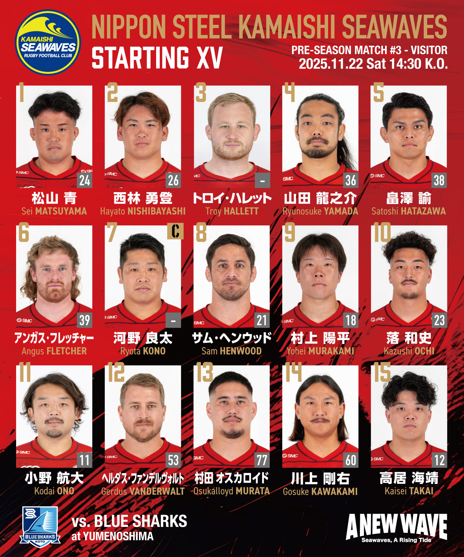 | 対戦相手 | 清水建設江東ブルーシャークス |
