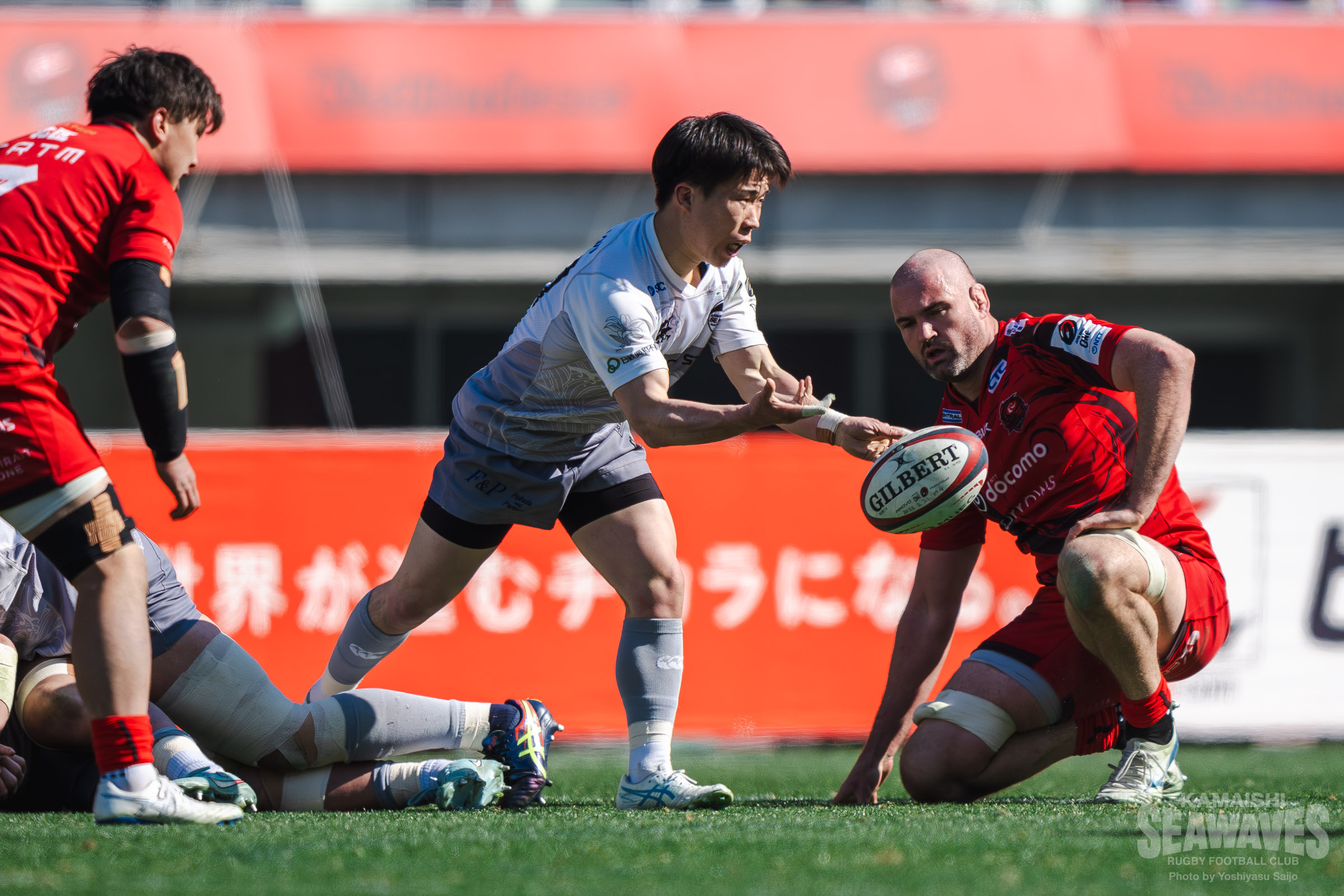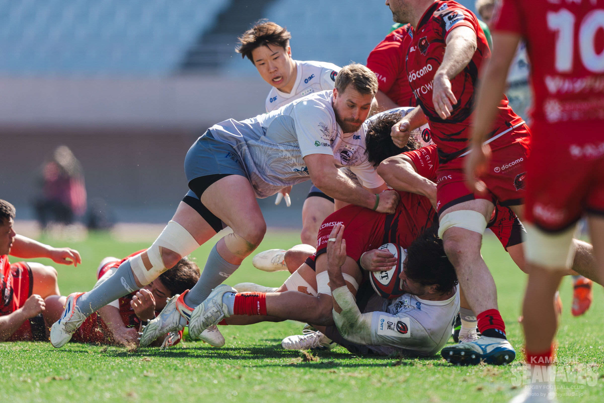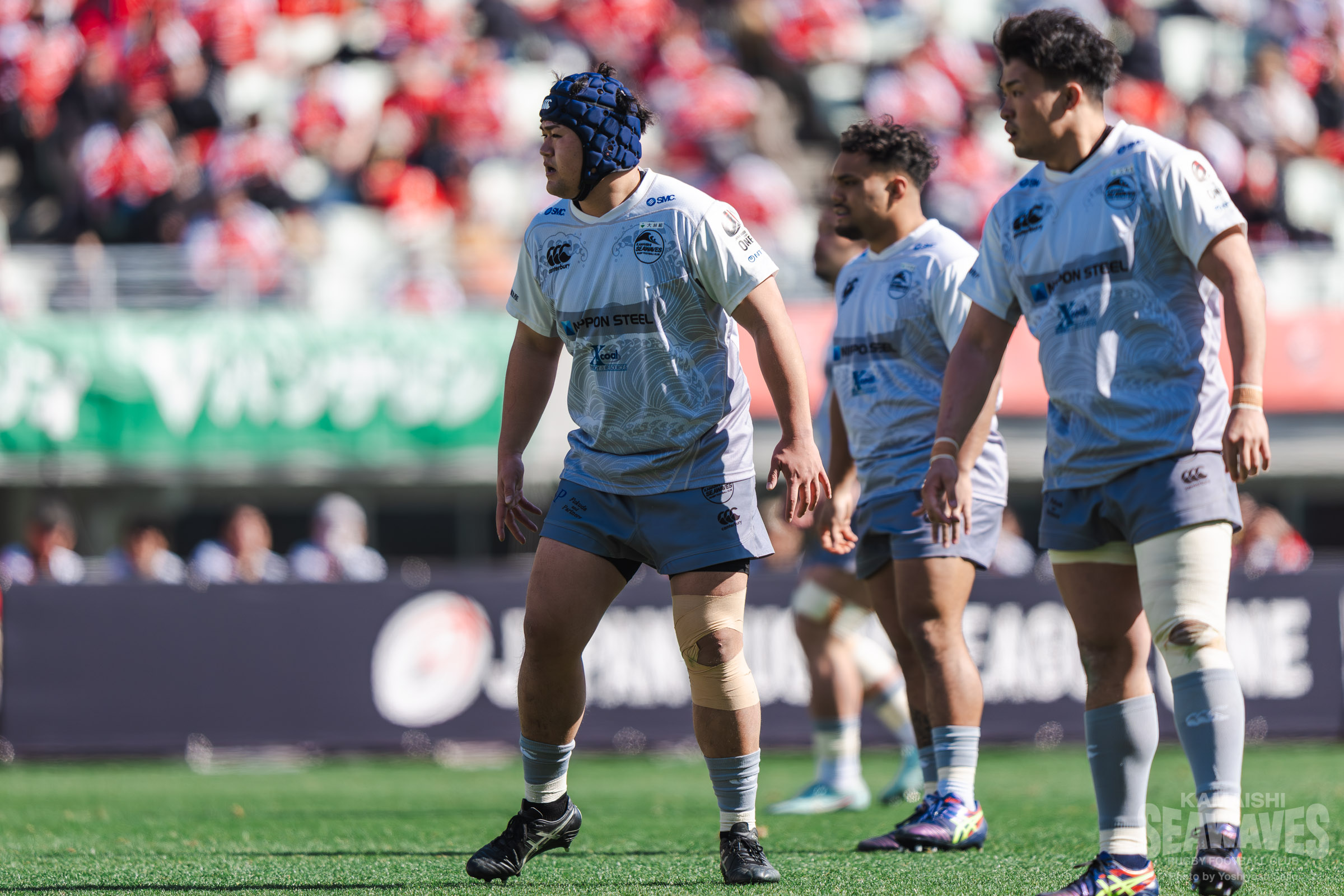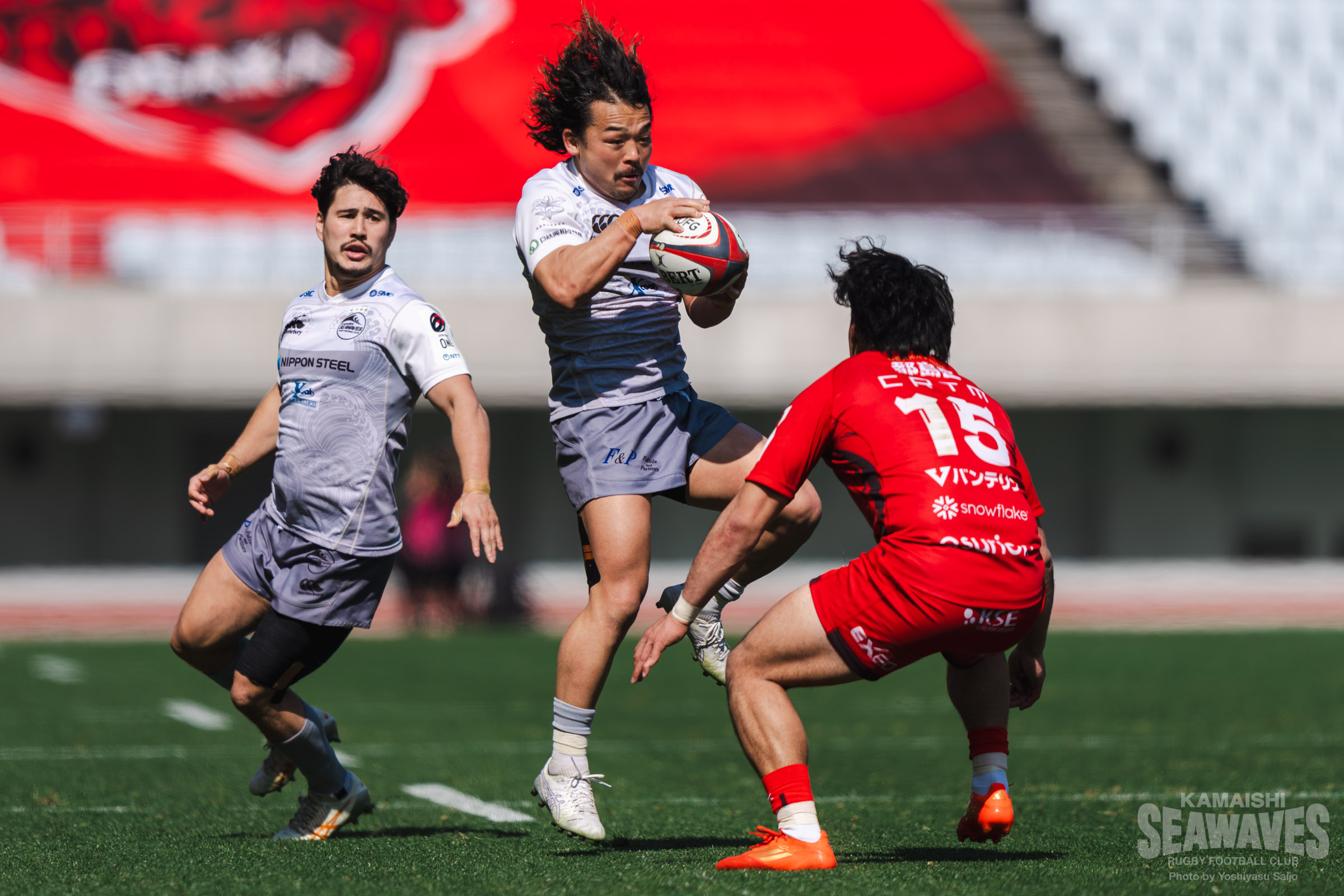 2月8日(土)に開催予定だったジャパンラグビーリーグワン ディビジョン2 第5節・NECグリーンロケッツ東葛戦は、大雪の影響により3月22日に延期となりました。そのため、日本製鉄釜石シーウェイブス(以下、釜石SW)にとって1カ月以上の間隔が空いた公式戦となったのが、2月21日(土)に行われたビジターゲーム、レッドハリケーンズ大阪(以下、RH大阪)との第6節。晴天のヤンマースタジアム長居でキックオフを迎えました。
