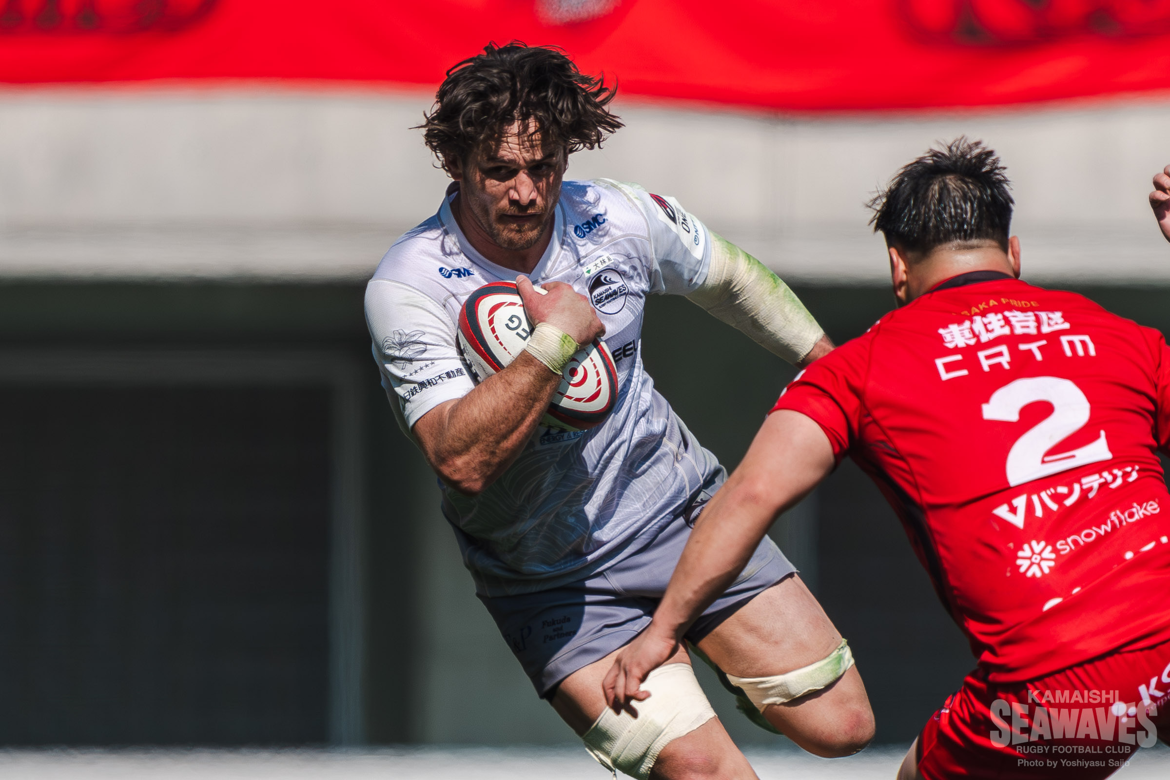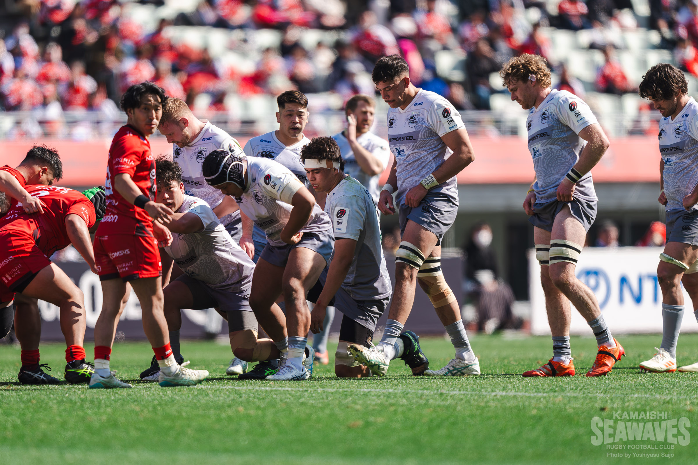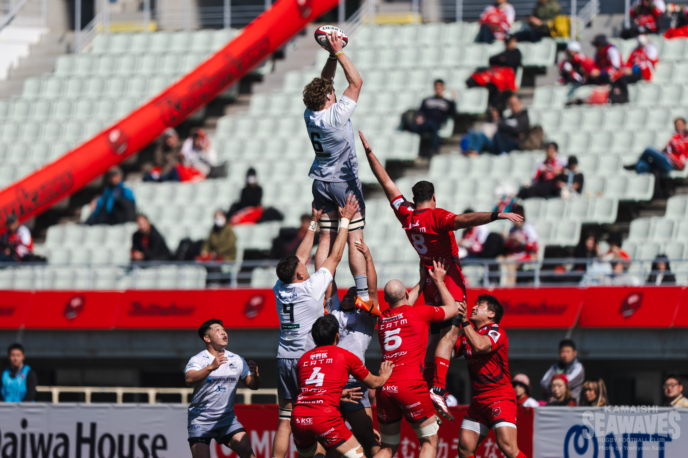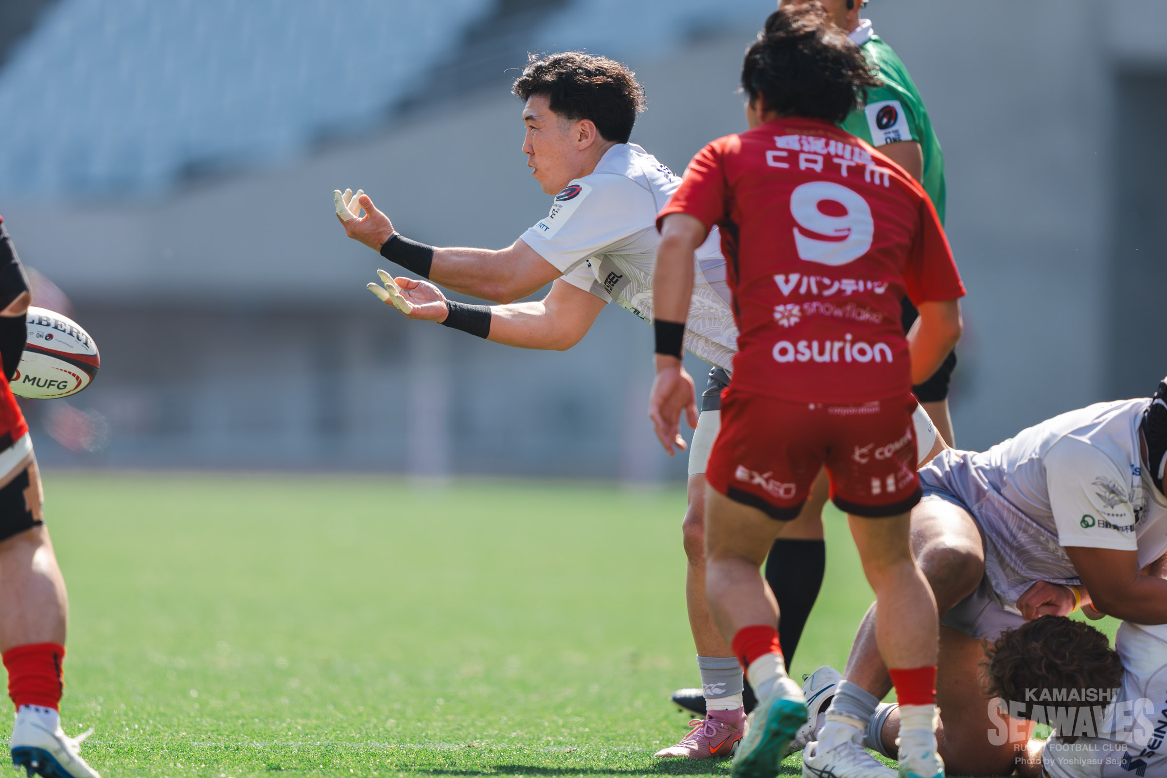 2月8日(土)に開催予定だったジャパンラグビーリーグワン ディビジョン2 第5節・NECグリーンロケッツ東葛戦は、大雪の影響により3月22日に延期となりました。そのため、日本製鉄釜石シーウェイブス(以下、釜石SW)にとって1カ月以上の間隔が空いた公式戦となったのが、2月21日(土)に行われたビジターゲーム、レッドハリケーンズ大阪(以下、RH大阪)との第6節。晴天のヤンマースタジアム長居でキックオフを迎えました。