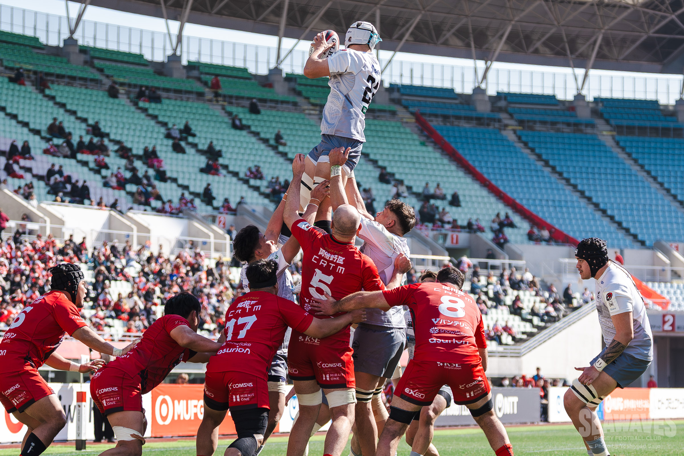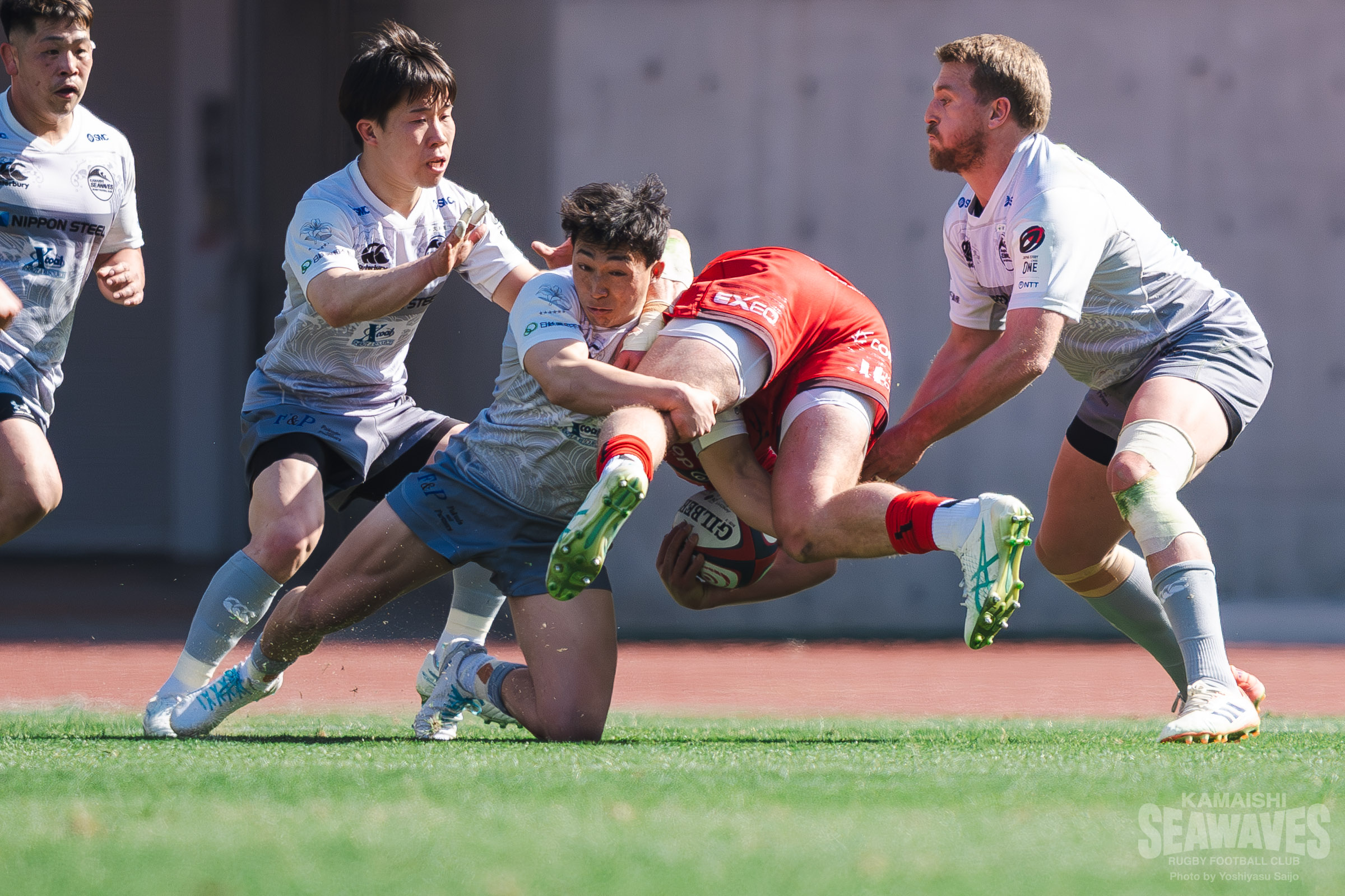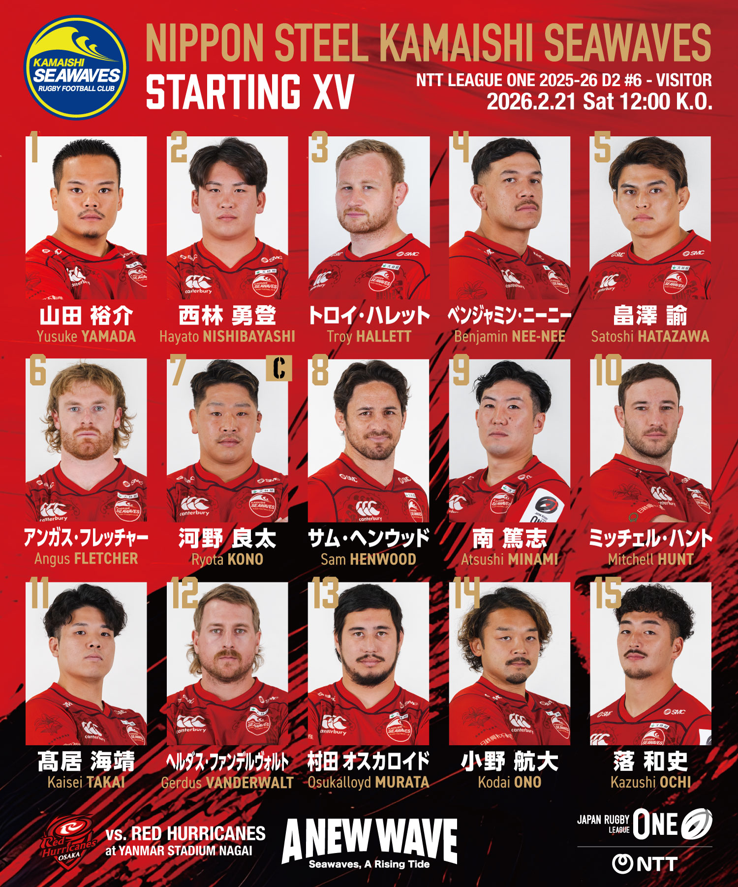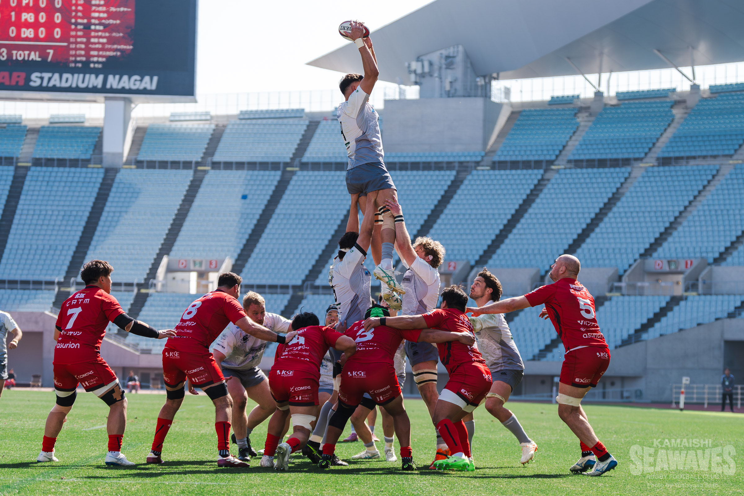 2月8日(土)に開催予定だったジャパンラグビーリーグワン ディビジョン2 第5節・NECグリーンロケッツ東葛戦は、大雪の影響により3月22日に延期となりました。そのため、日本製鉄釜石シーウェイブス(以下、釜石SW)にとって1カ月以上の間隔が空いた公式戦となったのが、2月21日(土)に行われたビジターゲーム、レッドハリケーンズ大阪(以下、RH大阪)との第6節。晴天のヤンマースタジアム長居でキックオフを迎えました。