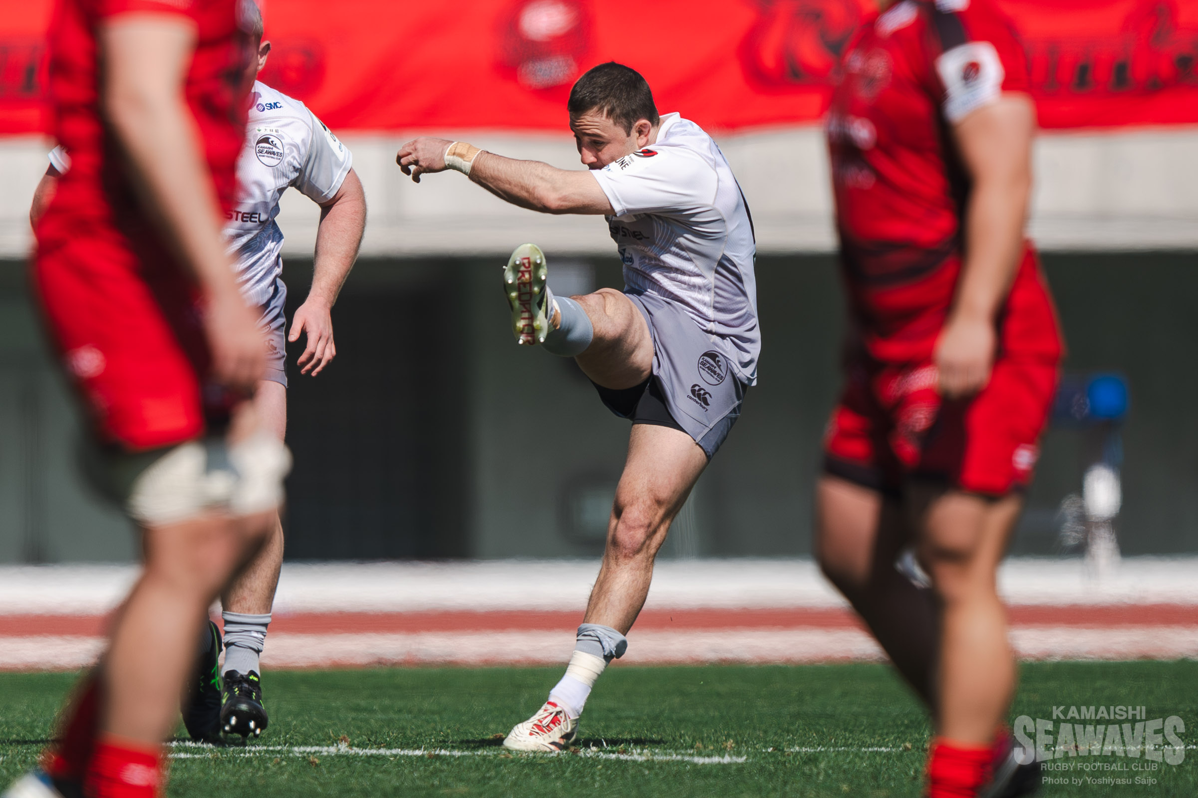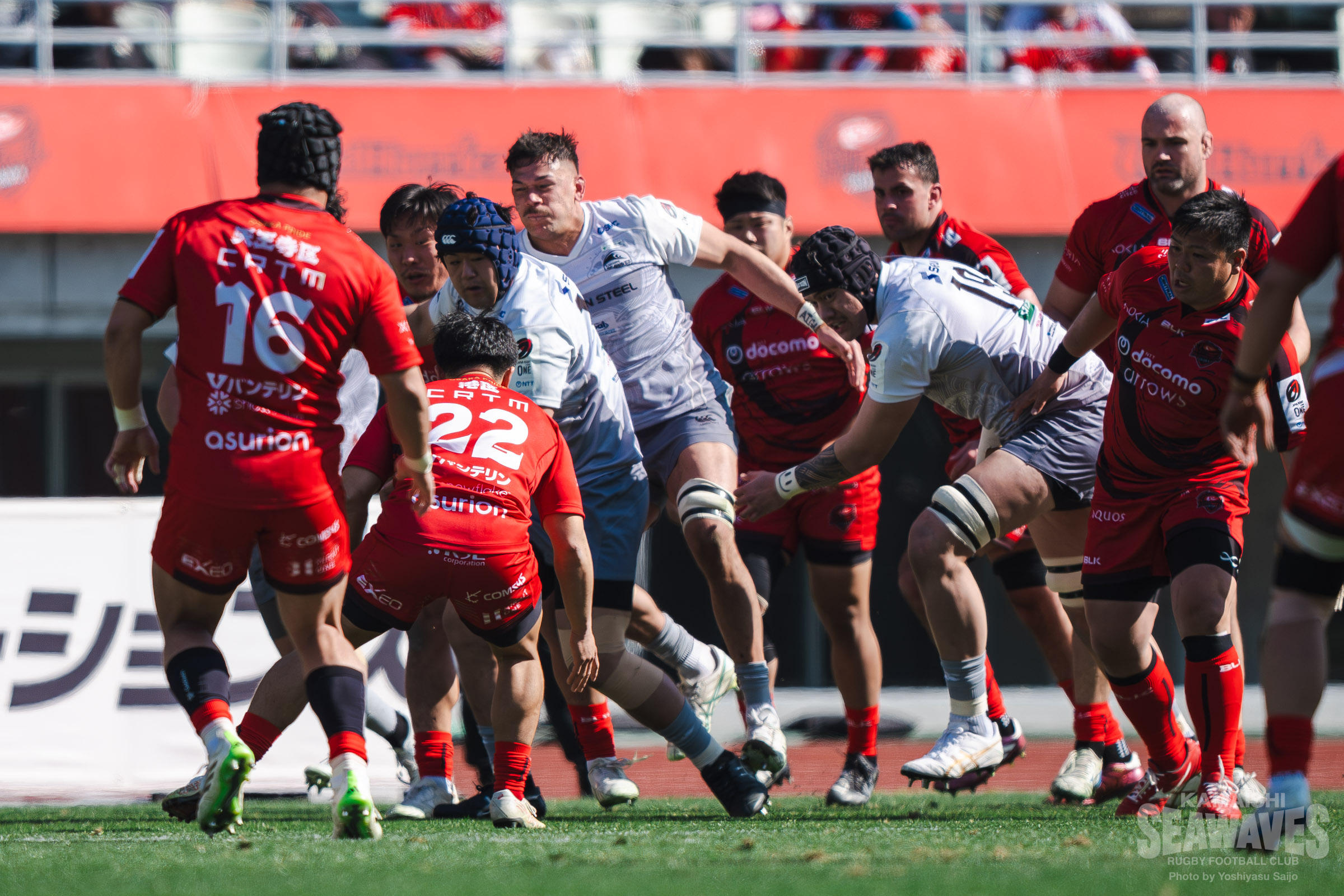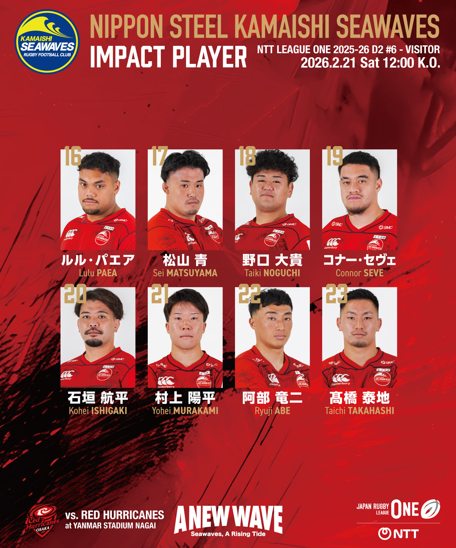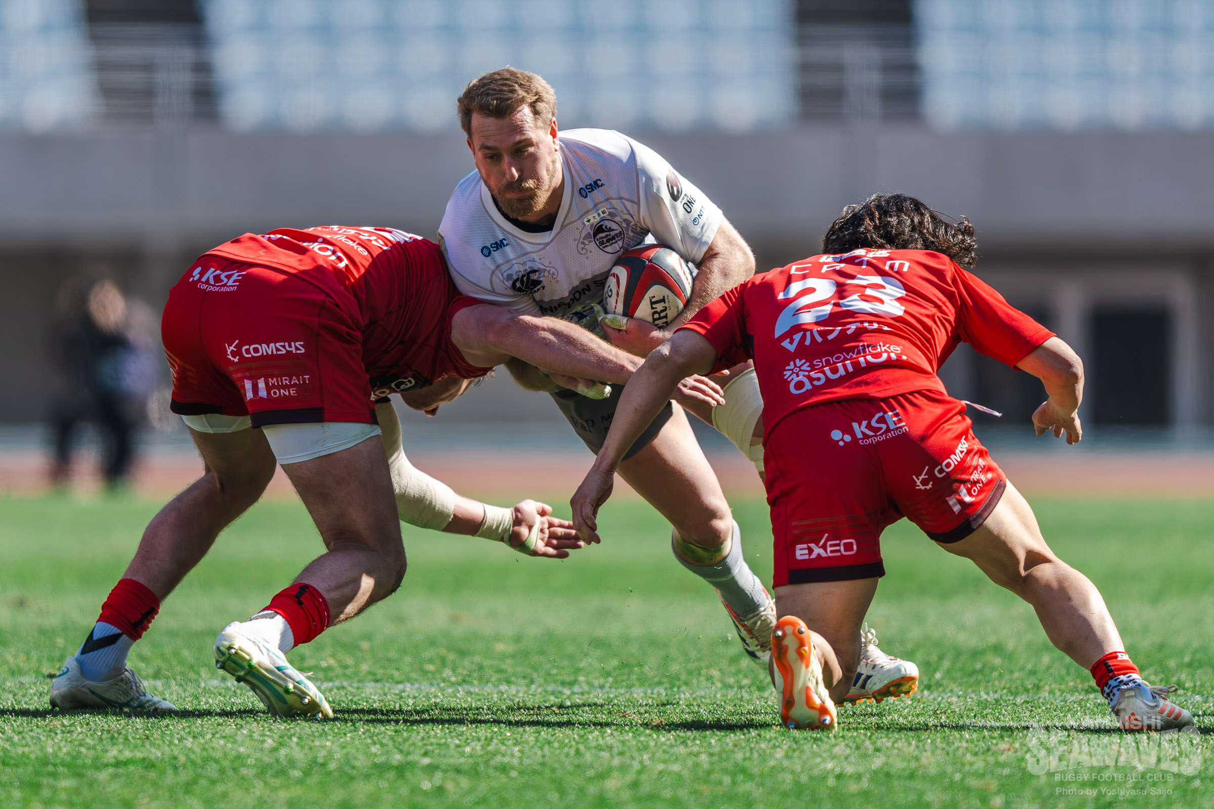 2月8日(土)に開催予定だったジャパンラグビーリーグワン ディビジョン2 第5節・NECグリーンロケッツ東葛戦は、大雪の影響により3月22日に延期となりました。そのため、日本製鉄釜石シーウェイブス(以下、釜石SW)にとって1カ月以上の間隔が空いた公式戦となったのが、2月21日(土)に行われたビジターゲーム、レッドハリケーンズ大阪(以下、RH大阪)との第6節。晴天のヤンマースタジアム長居でキックオフを迎えました。