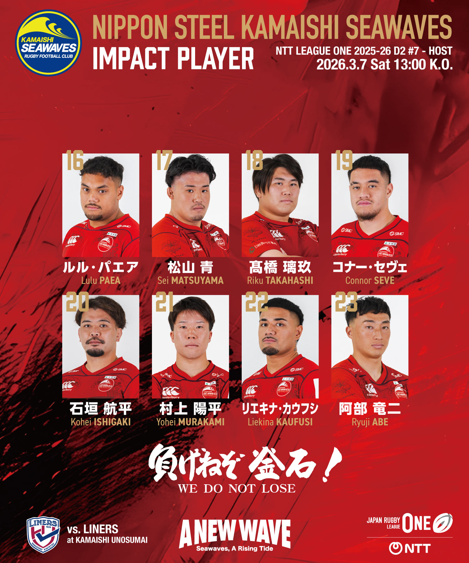 この試合から釜石SWは6連戦がスタートしました。次節はホストゲームで2月に敗れたレッドハリケーンズ大阪を釜石鵜住居復興スタジアムに迎えます。価値ある勝利を自信に変え、クラブ初の連勝をつかみに行きます。引き続き、ご声援のほどよろしくお願いいたします。