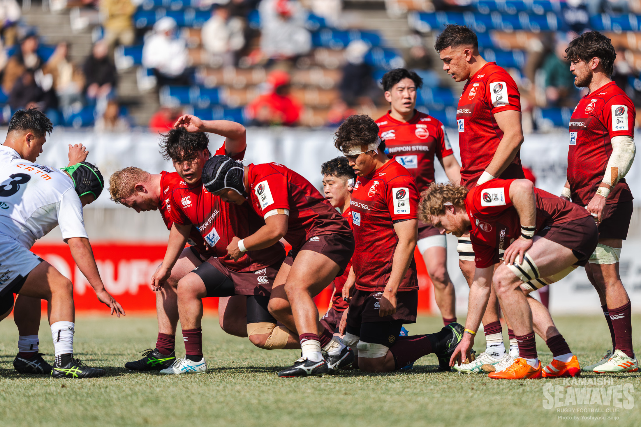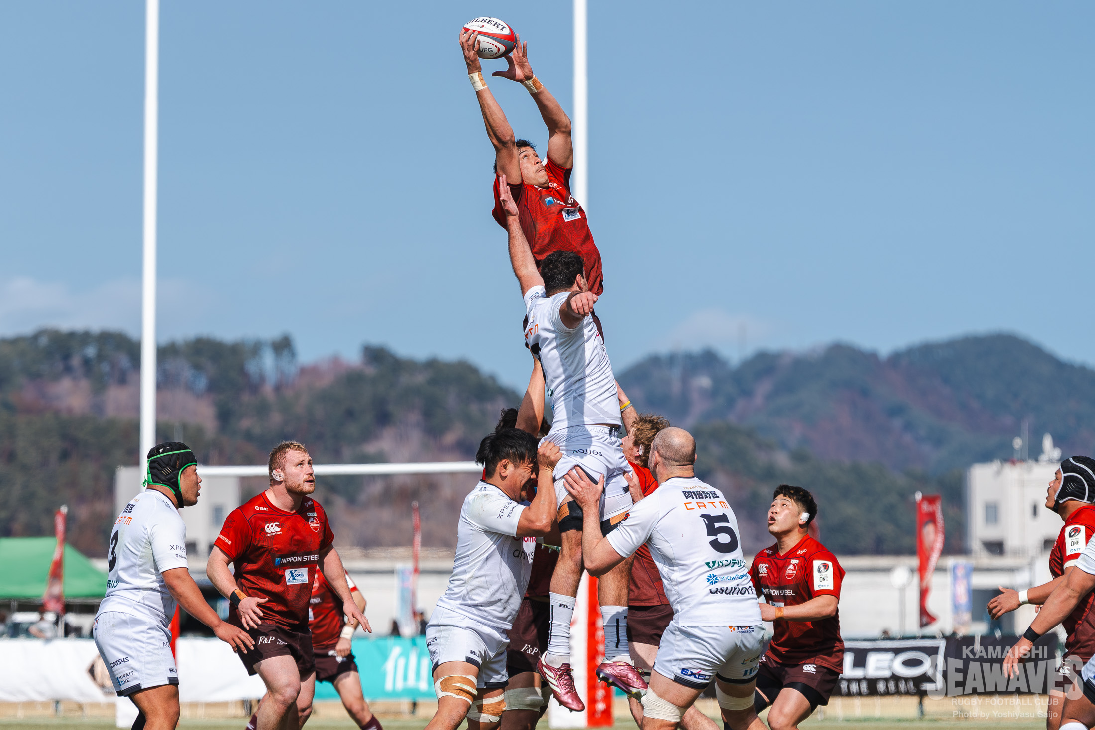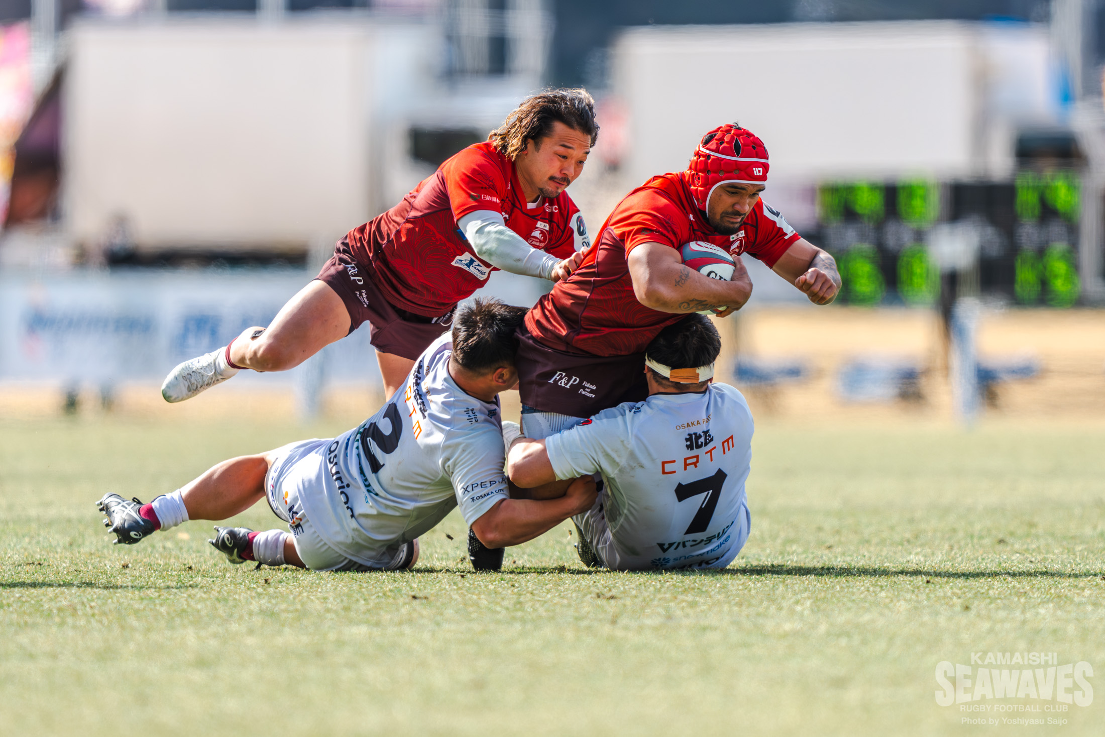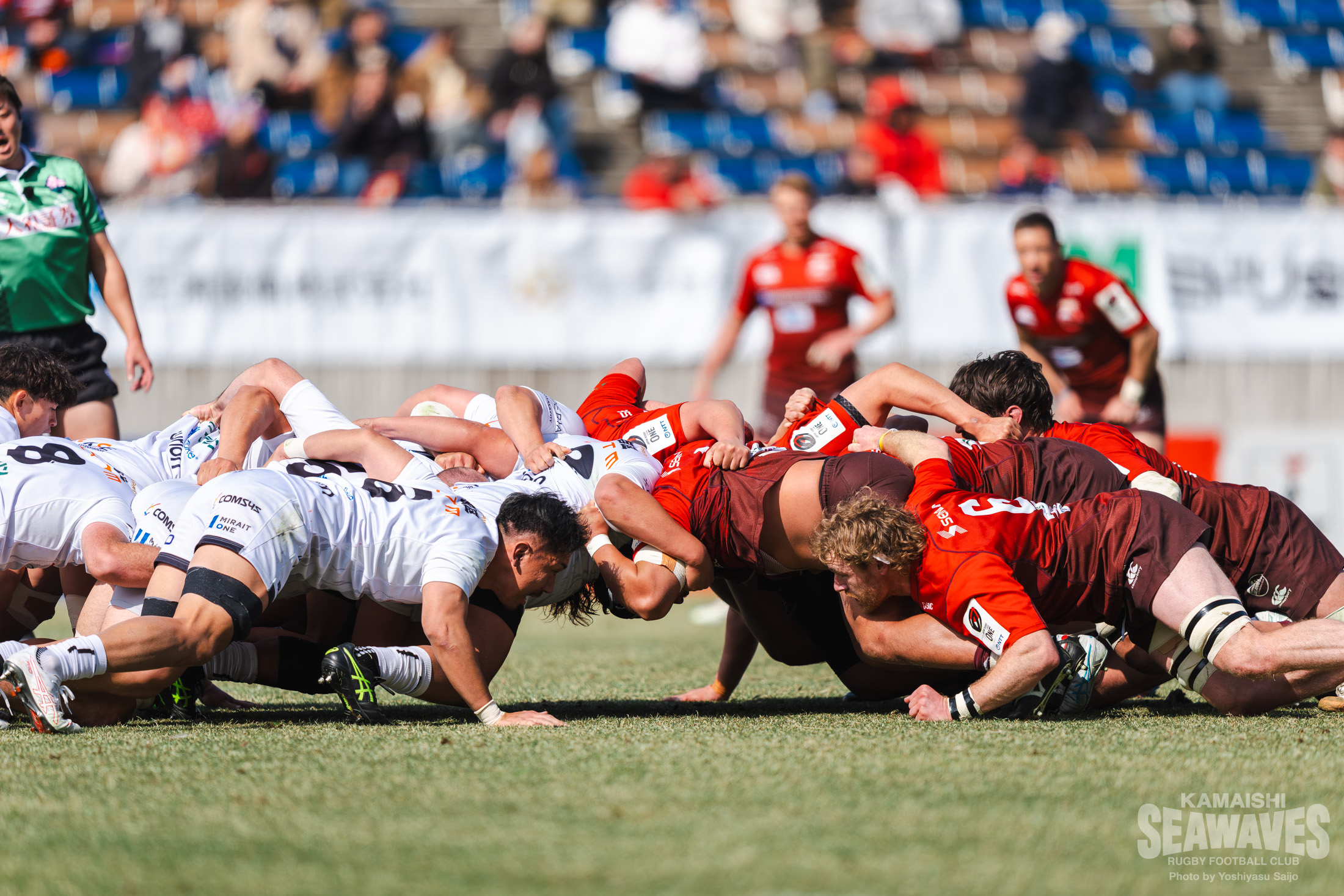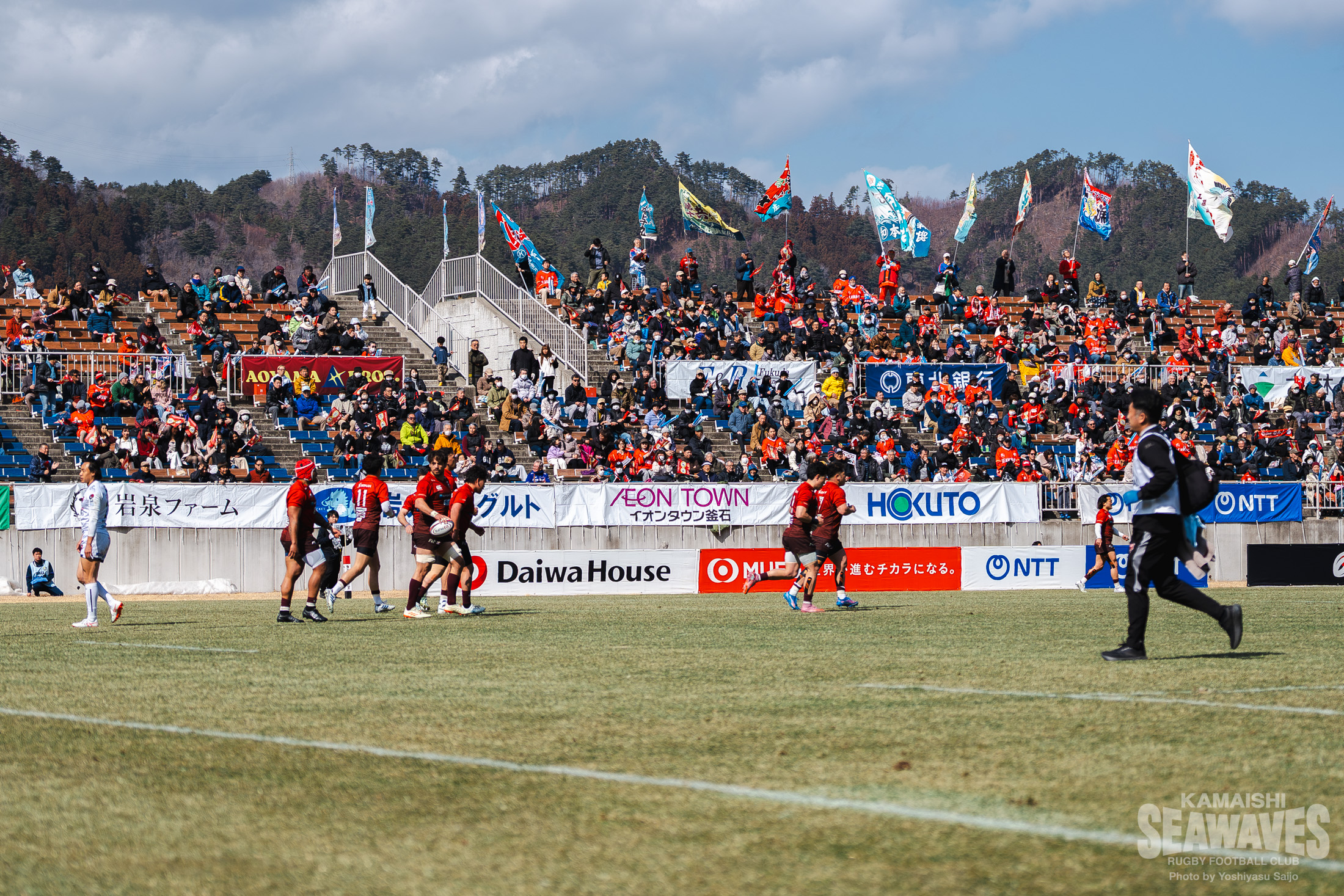 ジャパンラグビーリーグワン2025-26ディビジョン2第8節が3月15日(日)、釜石鵜住居復興スタジアムで行われ、日本製鉄釜石シーウェイブス(以下、釜石SW)はレッドハリケーンズ大阪(以下、RH大阪)と対戦しました。互いに得点を奪い合うクロスゲームとなりましたが、釜石SWは24―28で敗れました。