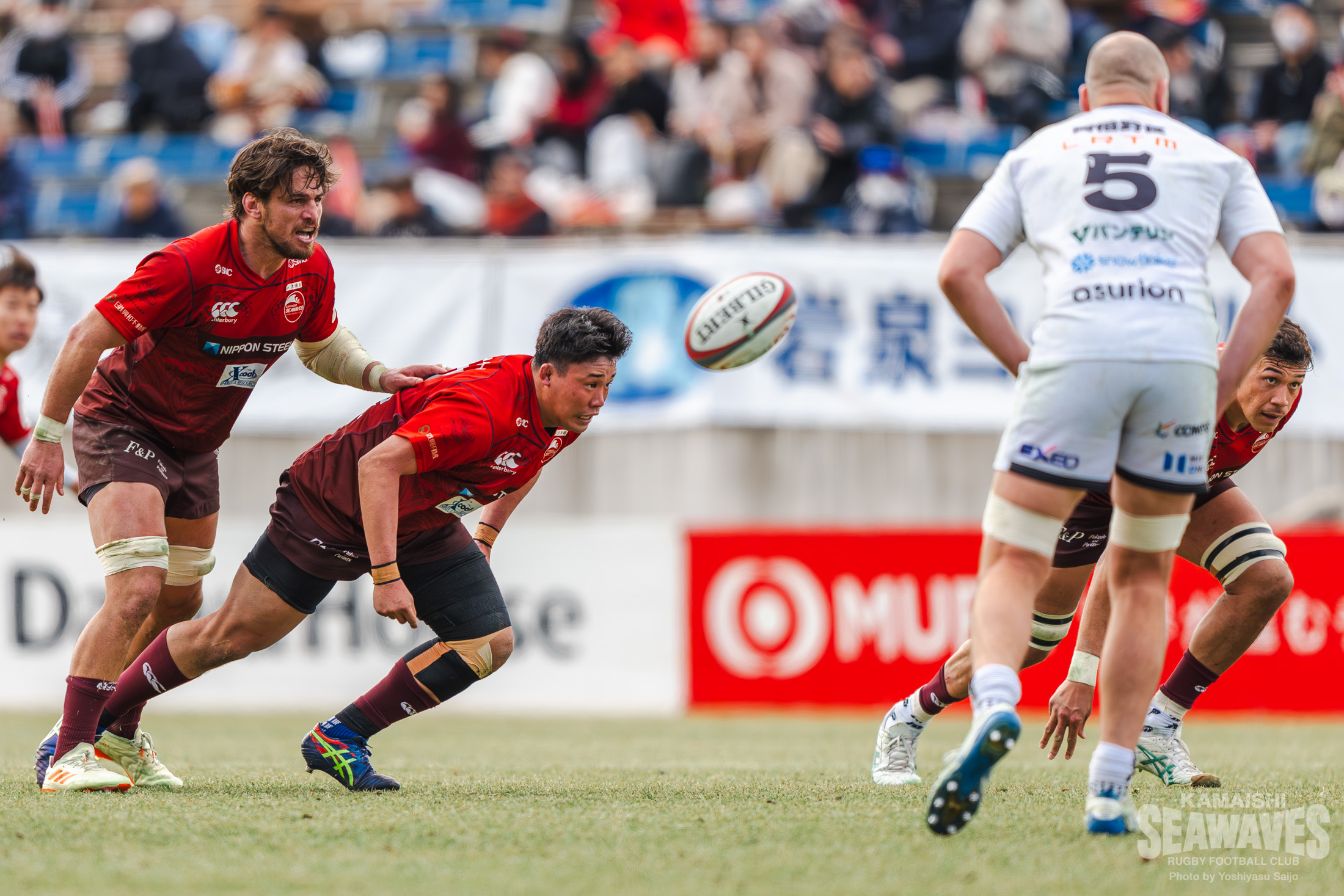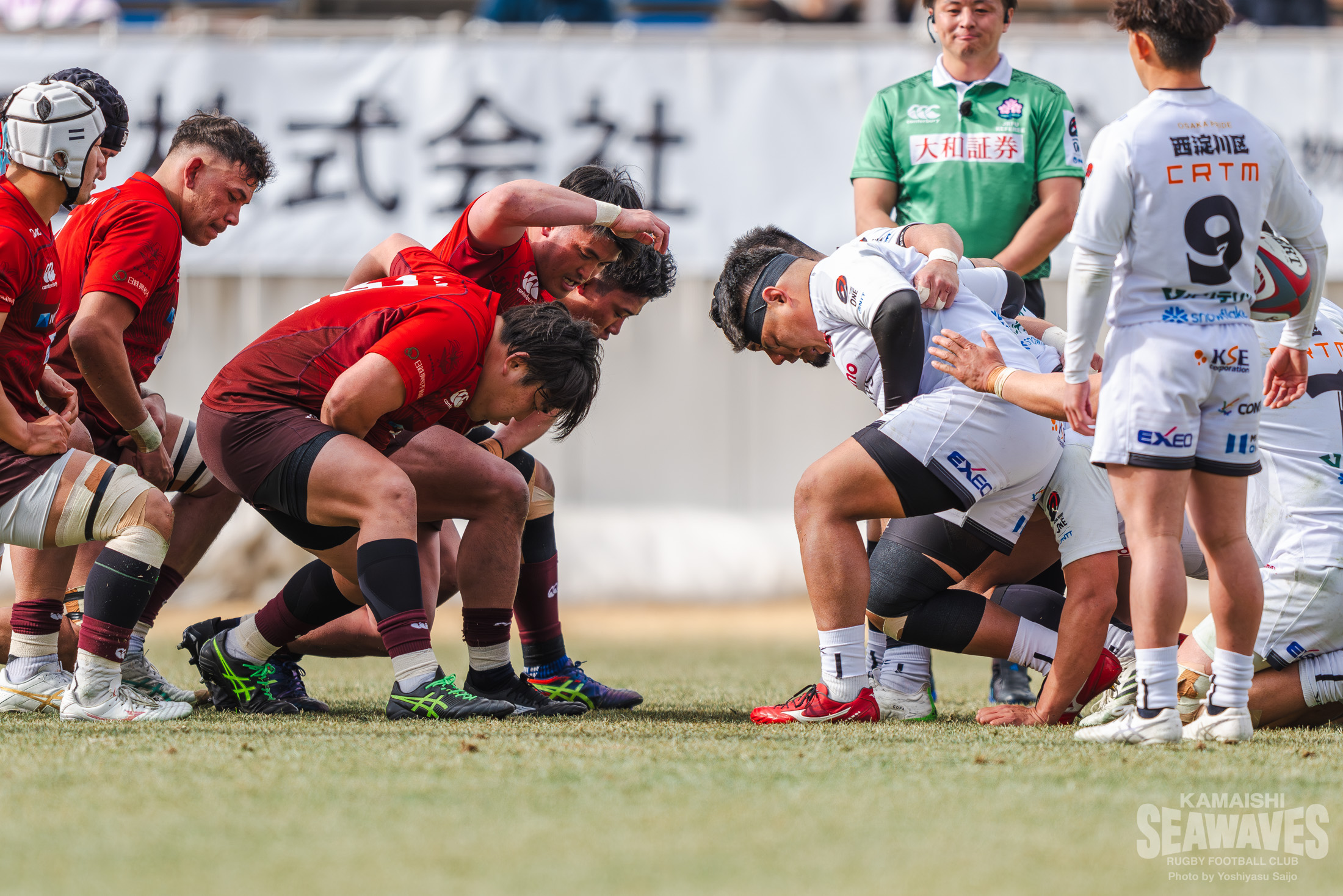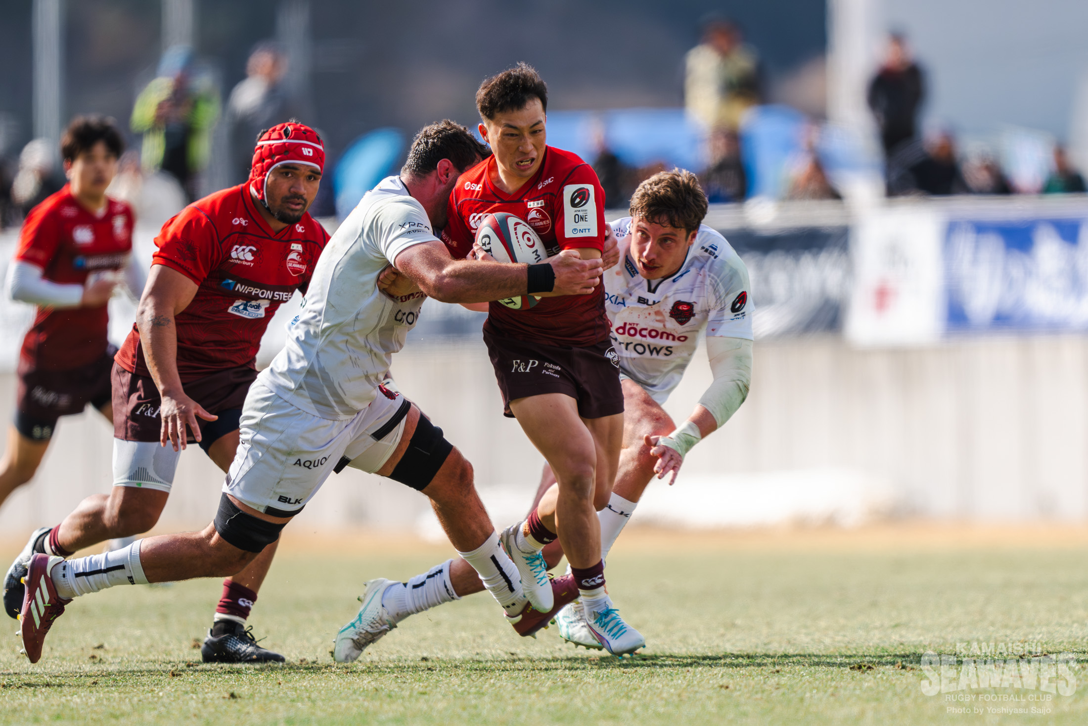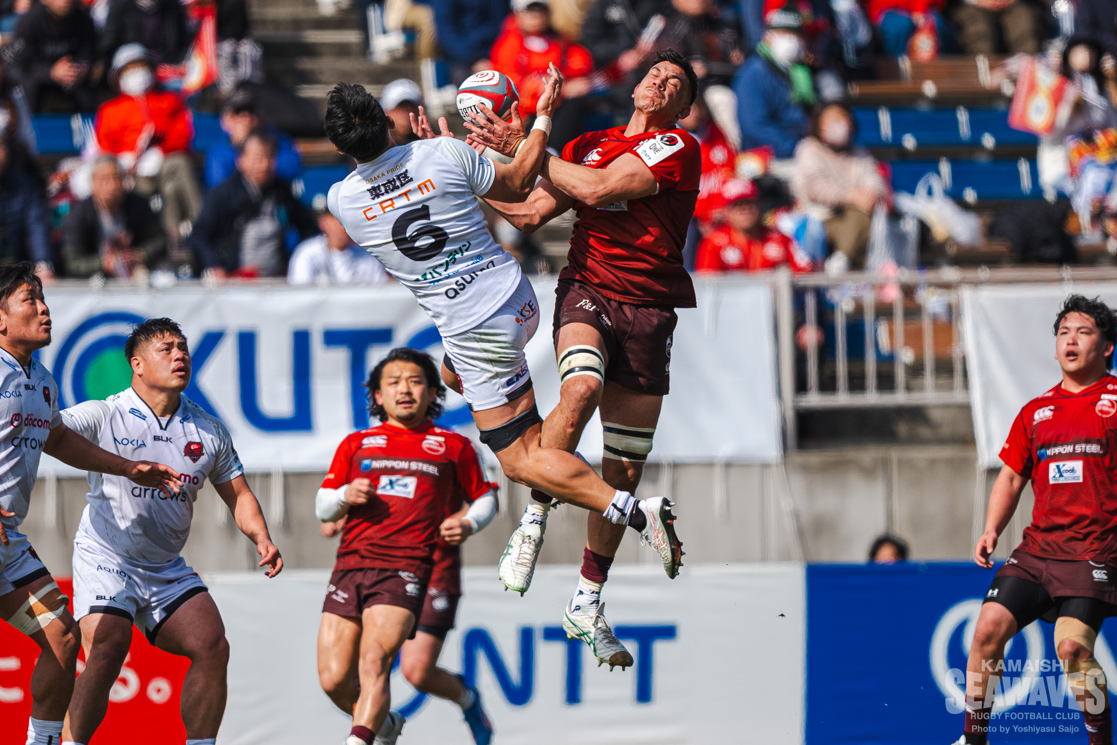 ジャパンラグビーリーグワン2025-26ディビジョン2第8節が3月15日(日)、釜石鵜住居復興スタジアムで行われ、日本製鉄釜石シーウェイブス(以下、釜石SW)はレッドハリケーンズ大阪(以下、RH大阪)と対戦しました。互いに得点を奪い合うクロスゲームとなりましたが、釜石SWは24―28で敗れました。