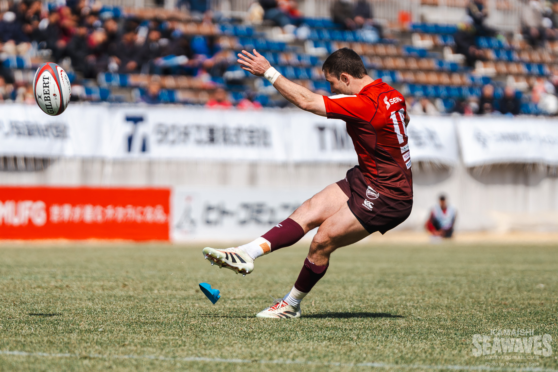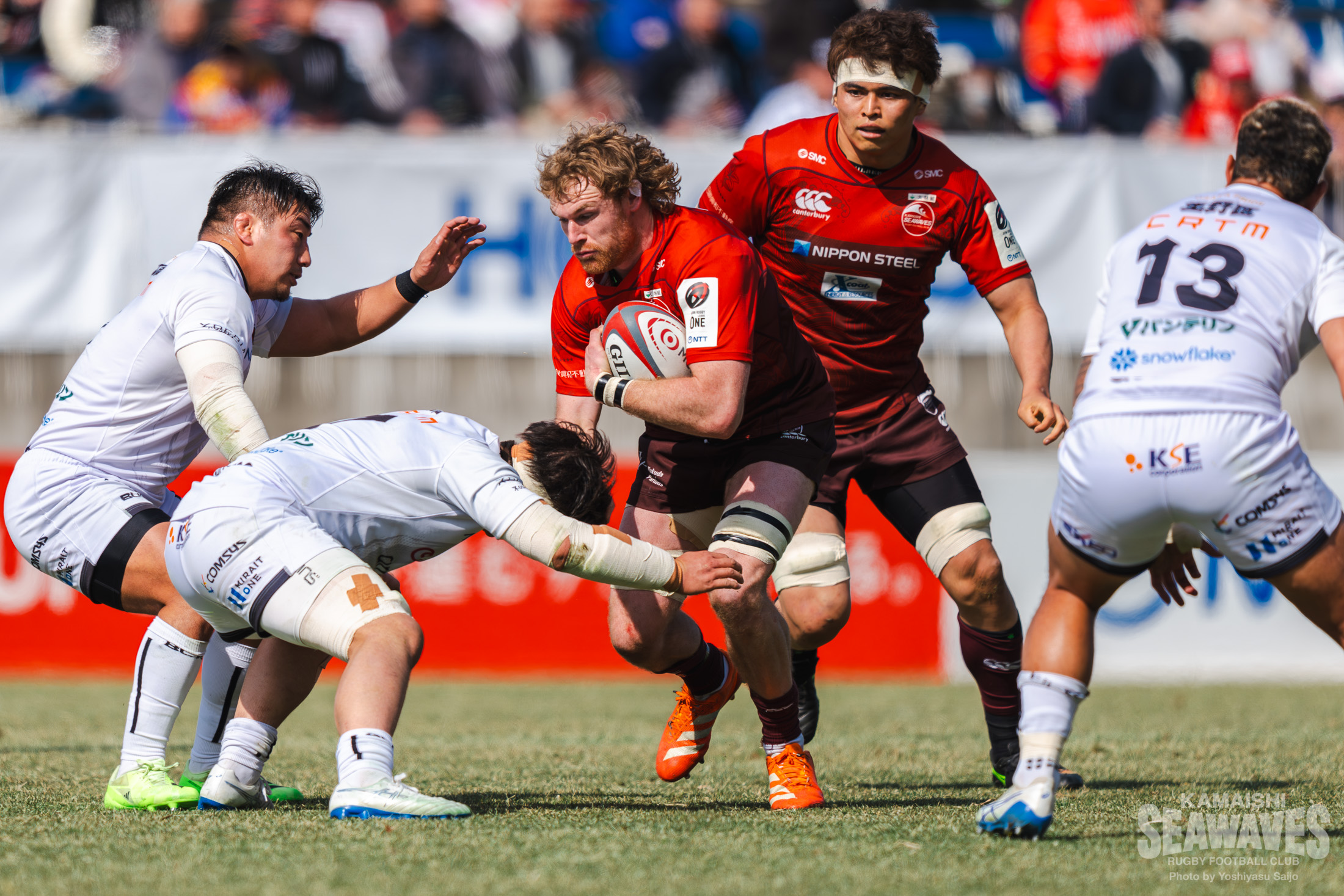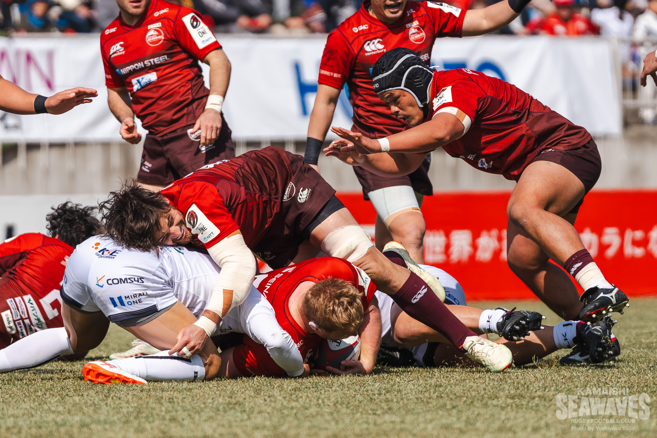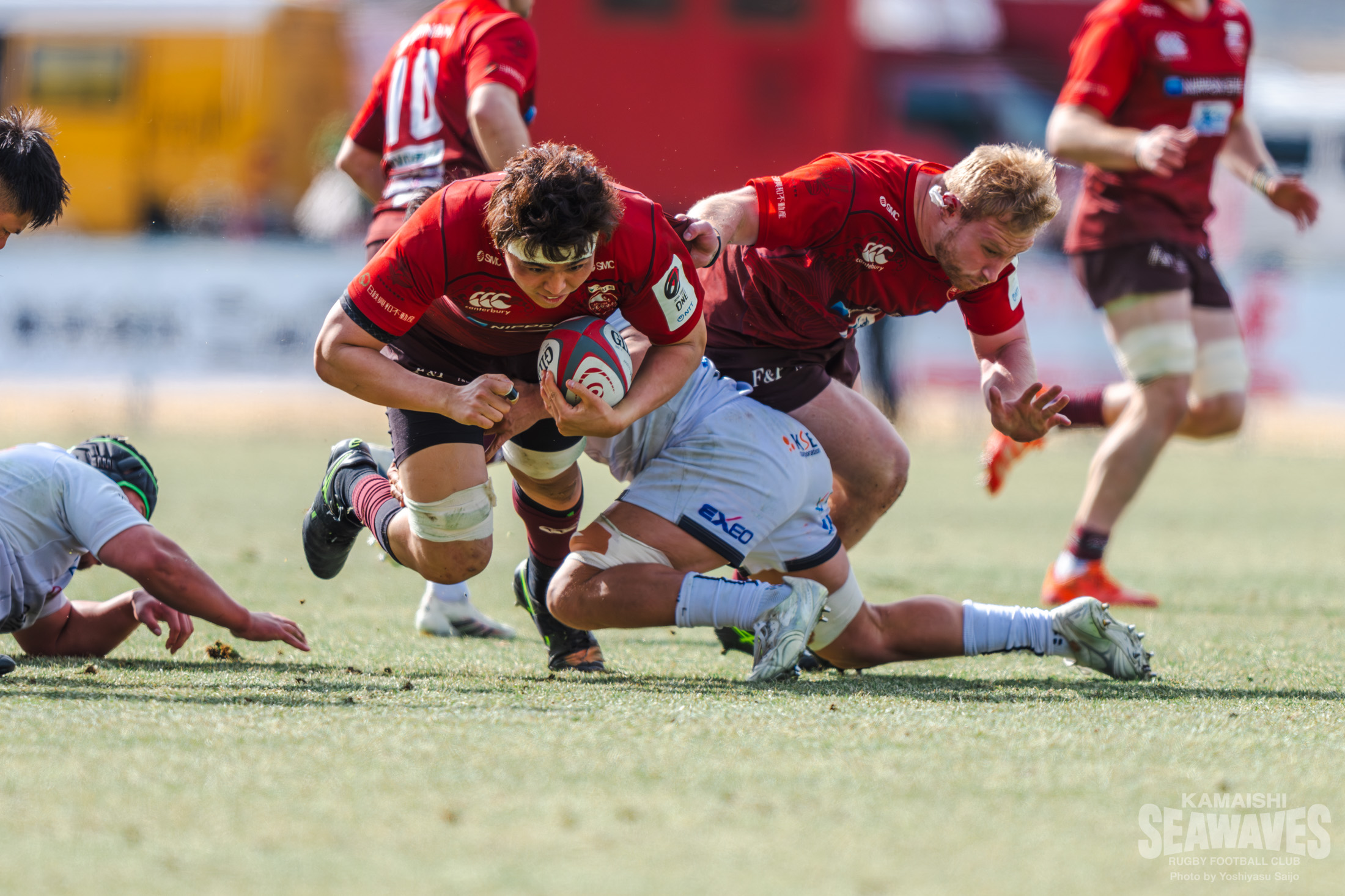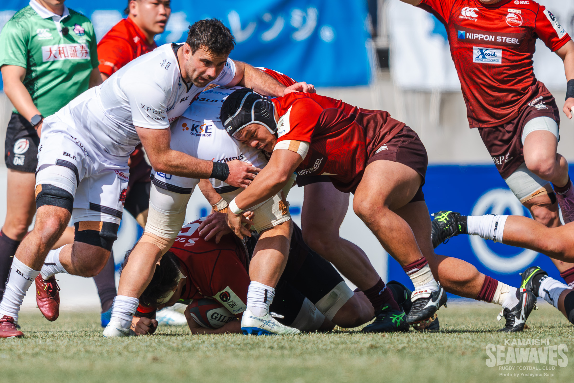 ジャパンラグビーリーグワン2025-26ディビジョン2第8節が3月15日(日)、釜石鵜住居復興スタジアムで行われ、日本製鉄釜石シーウェイブス(以下、釜石SW)はレッドハリケーンズ大阪(以下、RH大阪)と対戦しました。互いに得点を奪い合うクロスゲームとなりましたが、釜石SWは24―28で敗れました。