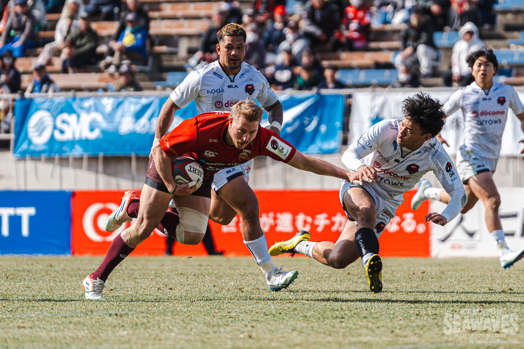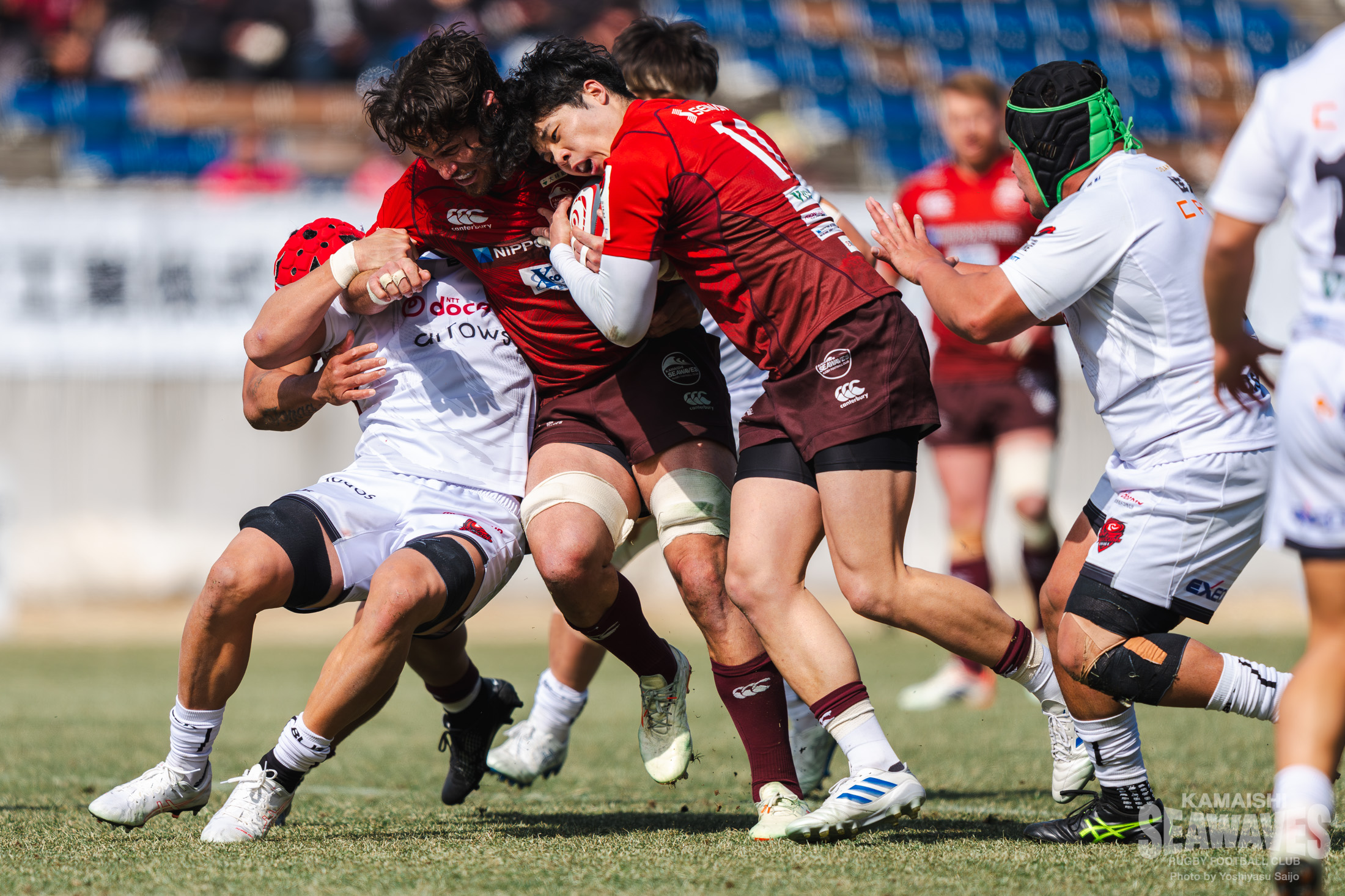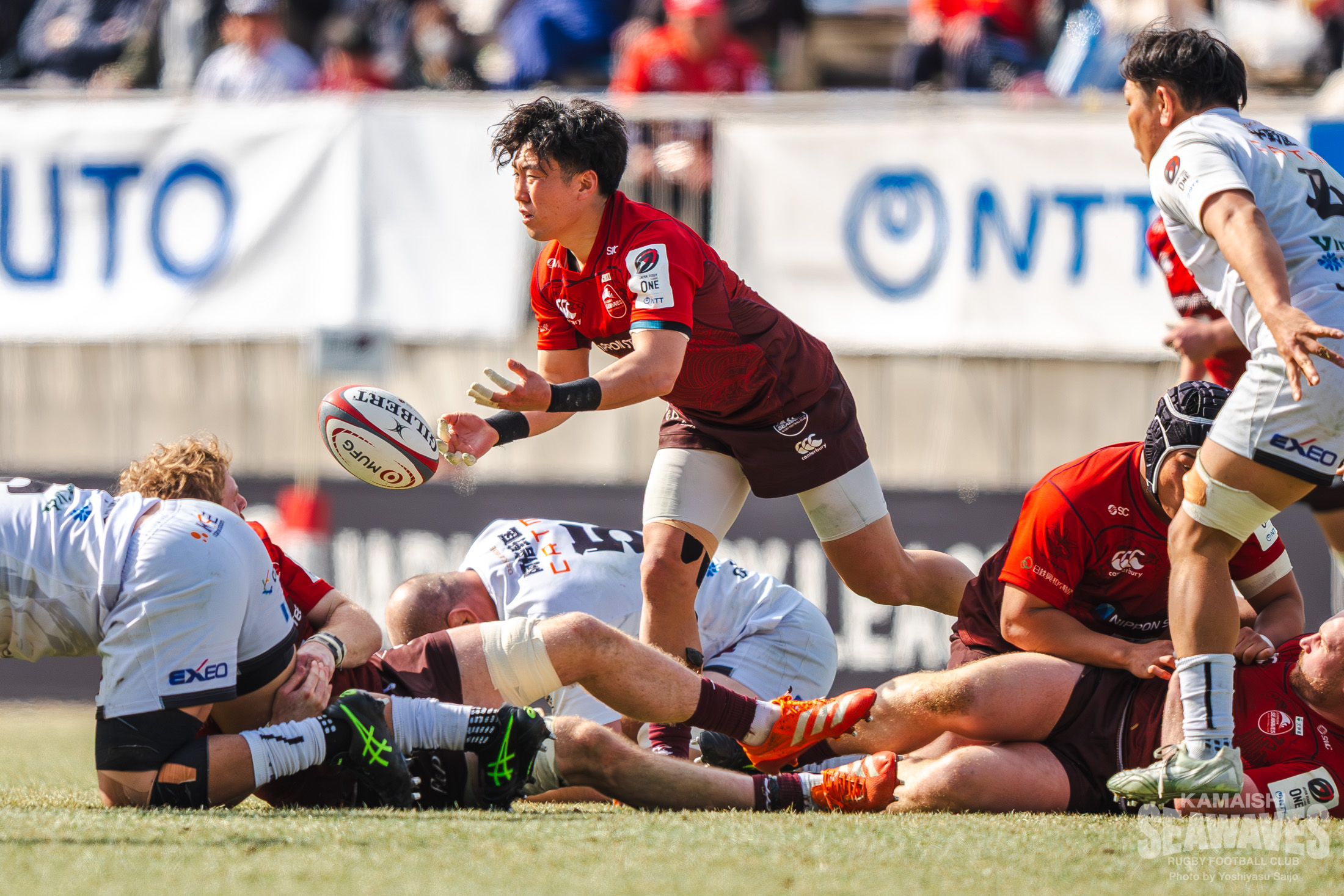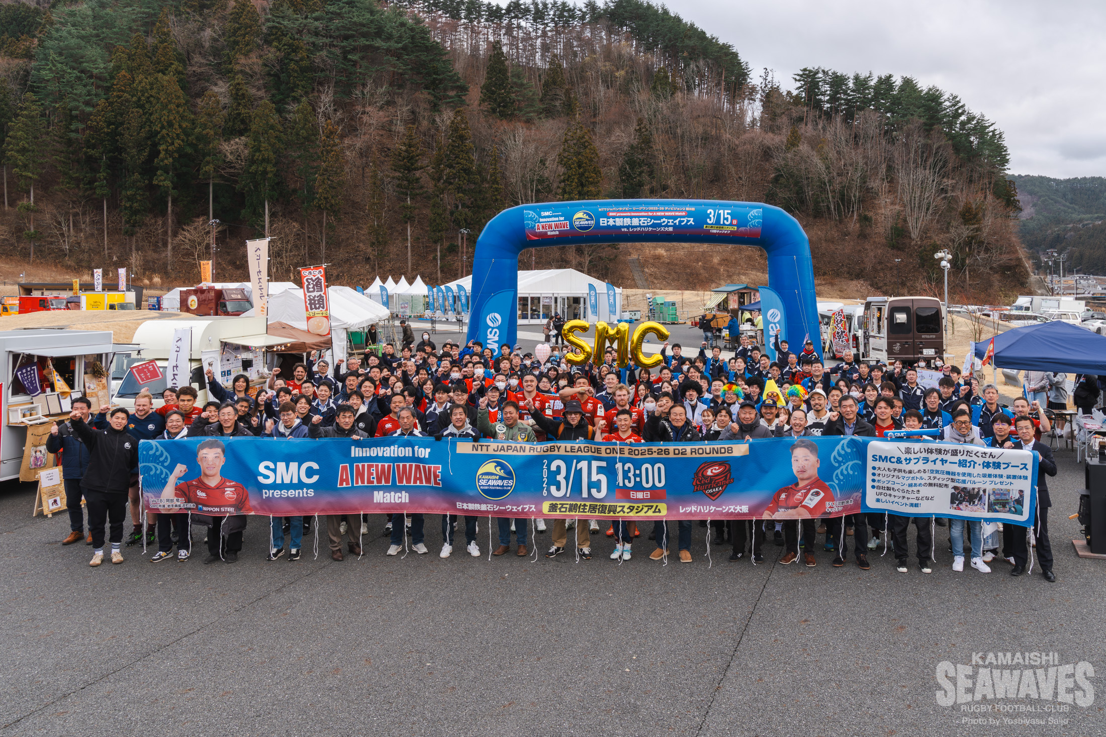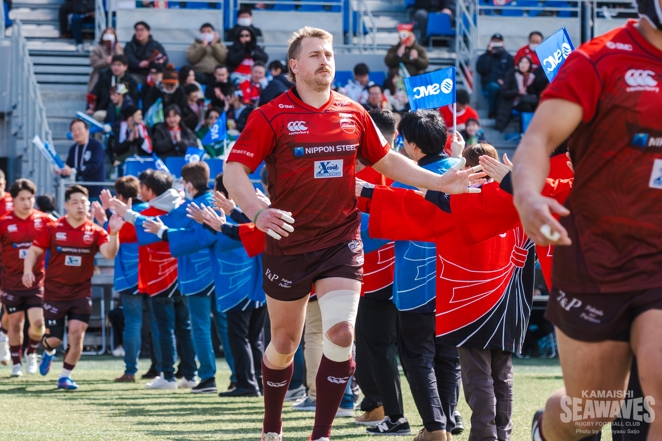 ジャパンラグビーリーグワン2025-26ディビジョン2第8節が3月15日(日)、釜石鵜住居復興スタジアムで行われ、日本製鉄釜石シーウェイブス(以下、釜石SW)はレッドハリケーンズ大阪(以下、RH大阪)と対戦しました。互いに得点を奪い合うクロスゲームとなりましたが、釜石SWは24―28で敗れました。