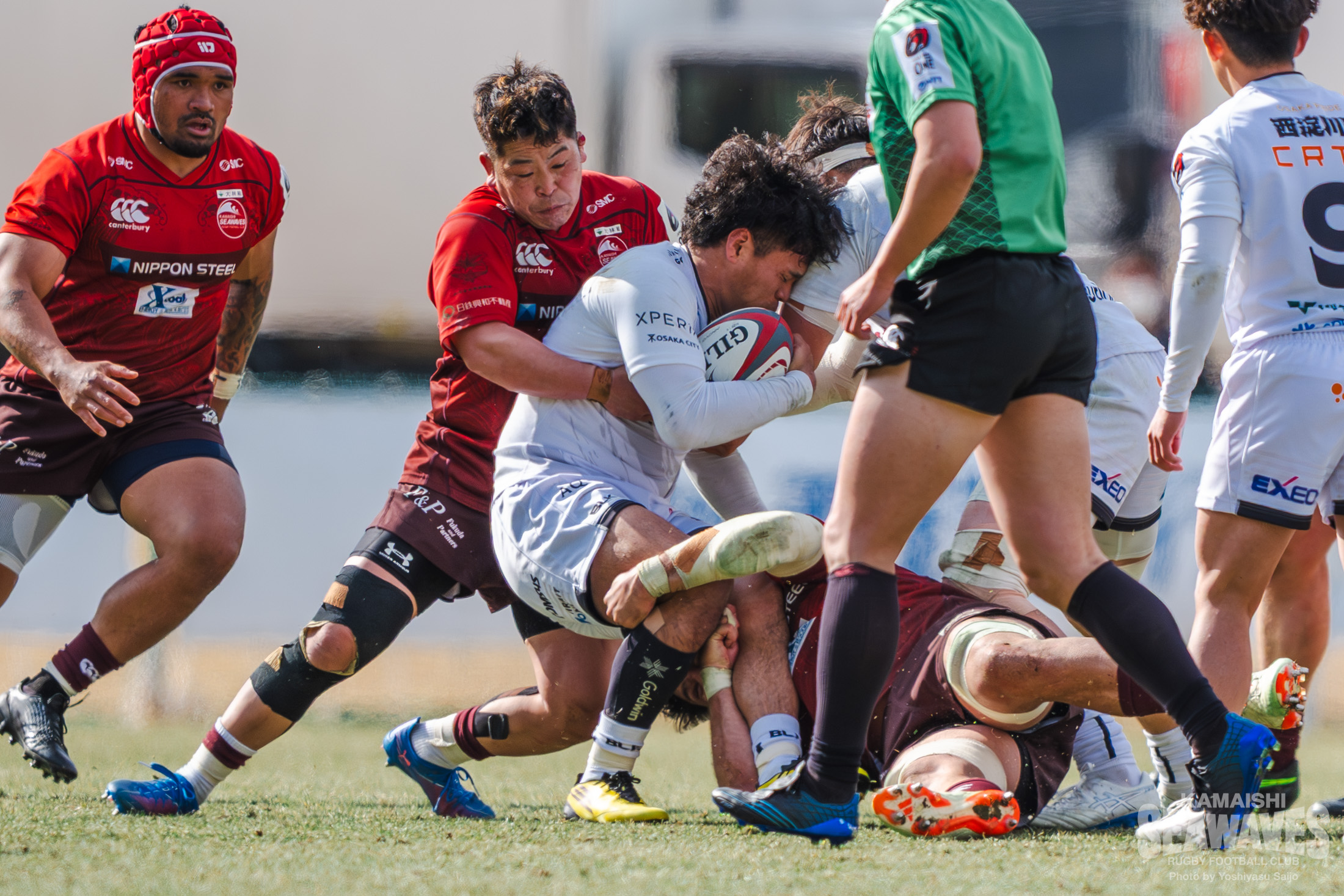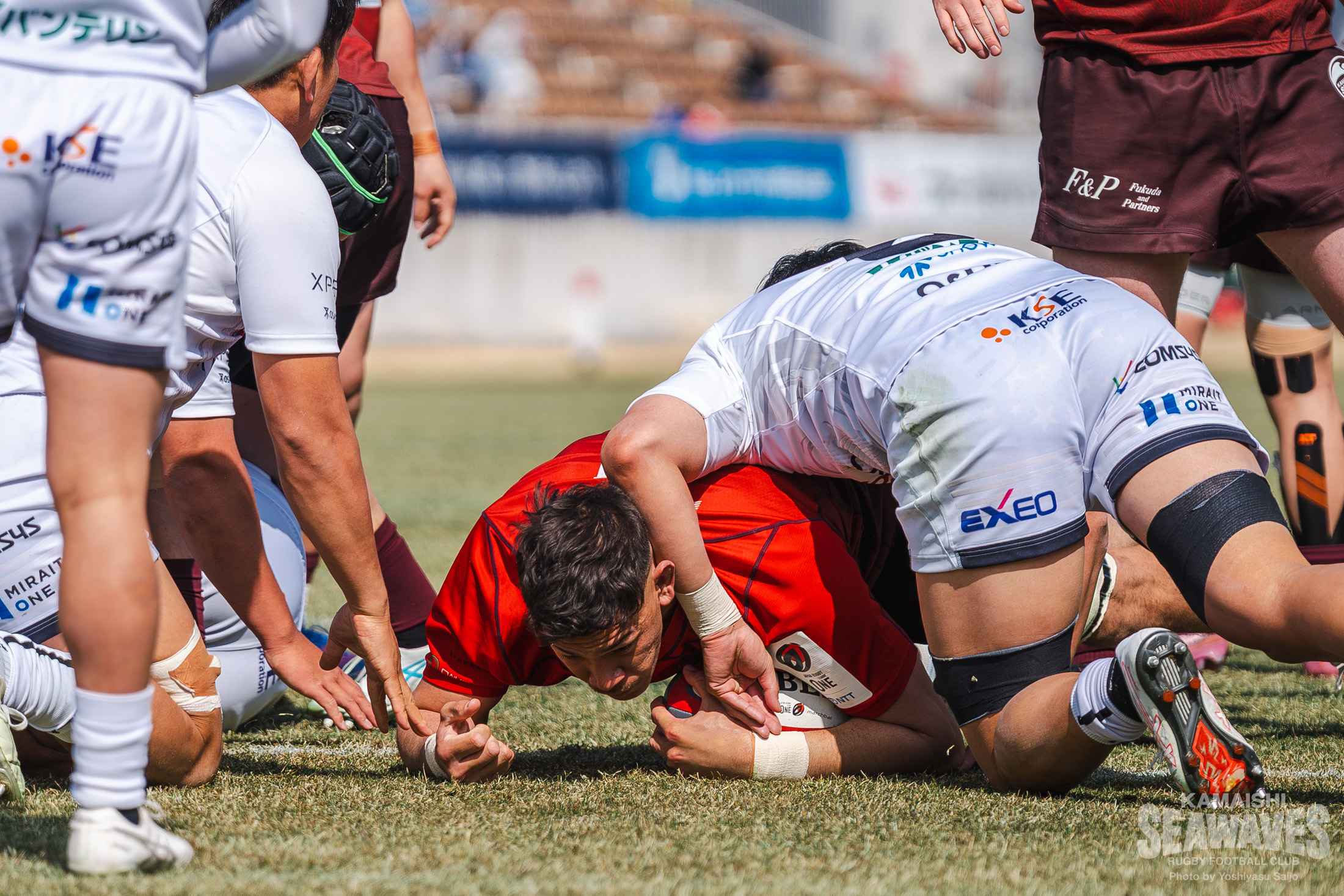しかし試合の主導権を握るところまではいかず、得点から2分後の後半9分、RH大阪に右サイドから大きく前進を許し、中央でトライを決められて17―22とされます。