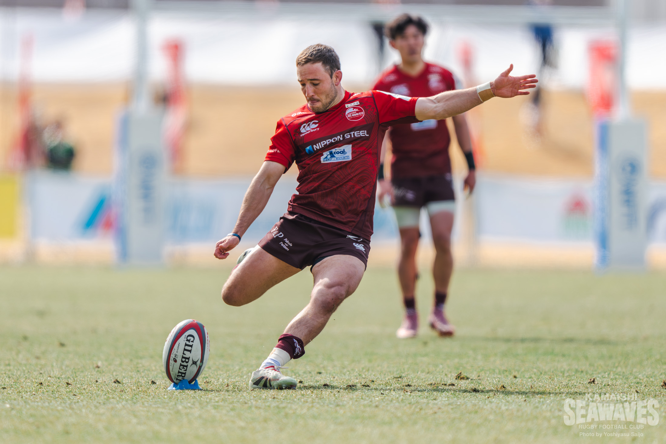 それでも釜石SWは敵陣でプレッシャーをかけ続け、敵陣でペナルティを得るとショットを選択。ハント選手が確実に成功させてスコアを17―15として再びリードを奪います。