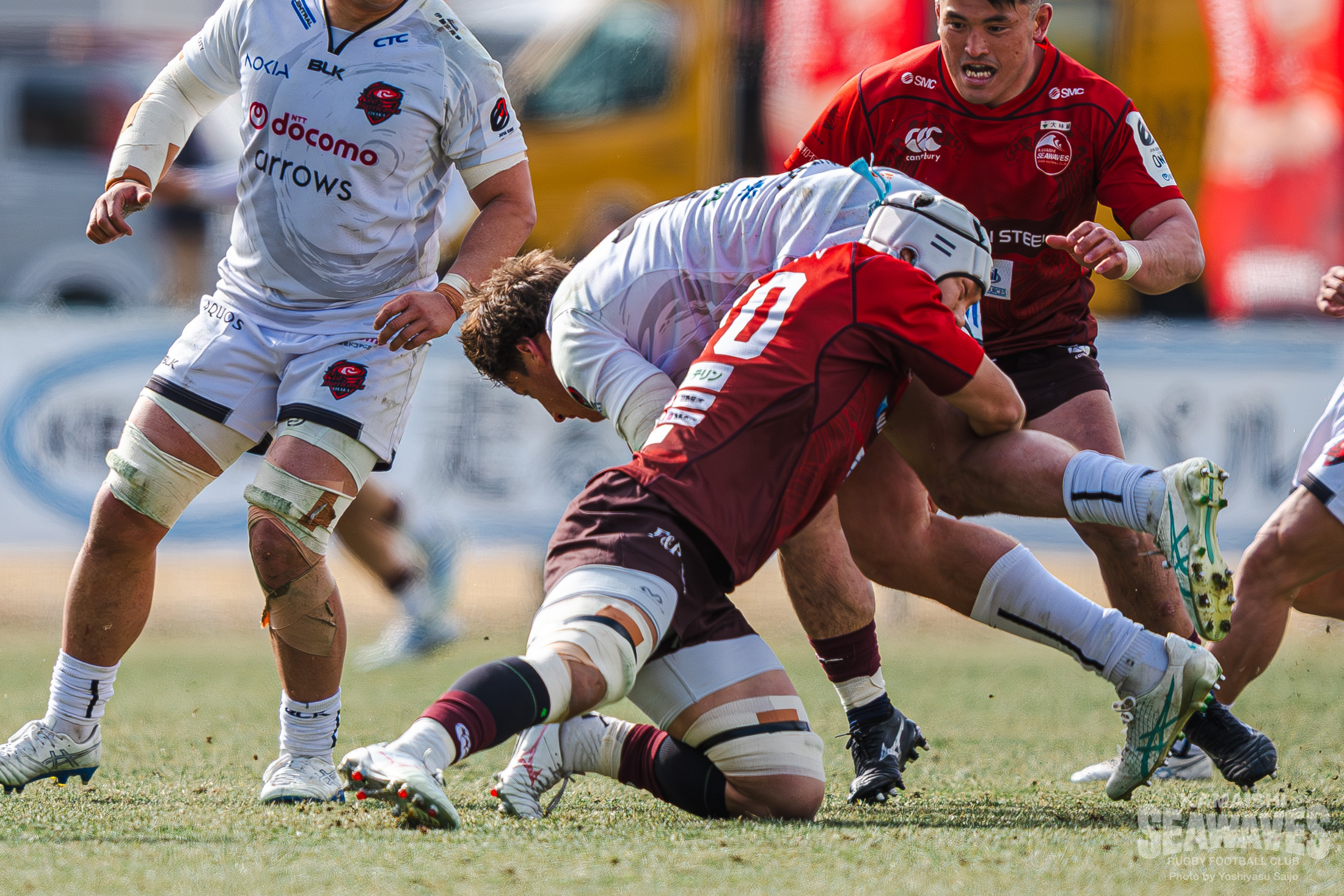 「非常に残念な結果となりました。私たちは勝てる試合だと思って臨みましたが、結果としては相手の方が勝利にふさわしいパフォーマンスだったと思います。ディフェンスのエナジーやラック周りの激しさ、プレーへの情熱という点でレッドハリケーンズ大阪(以下、RH大阪)のほうが上回っていました。自分たちはエラーも多く、スクラムも安定せず、試合の流れをつかむことができませんでした」