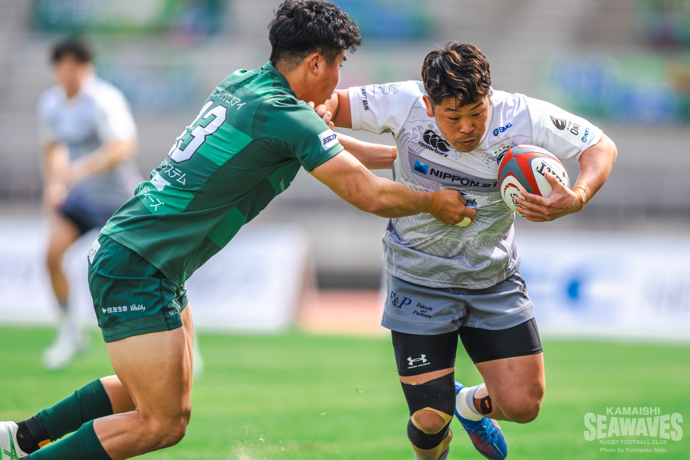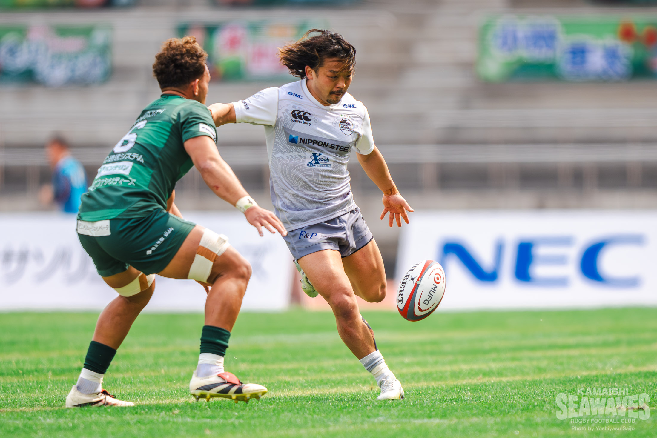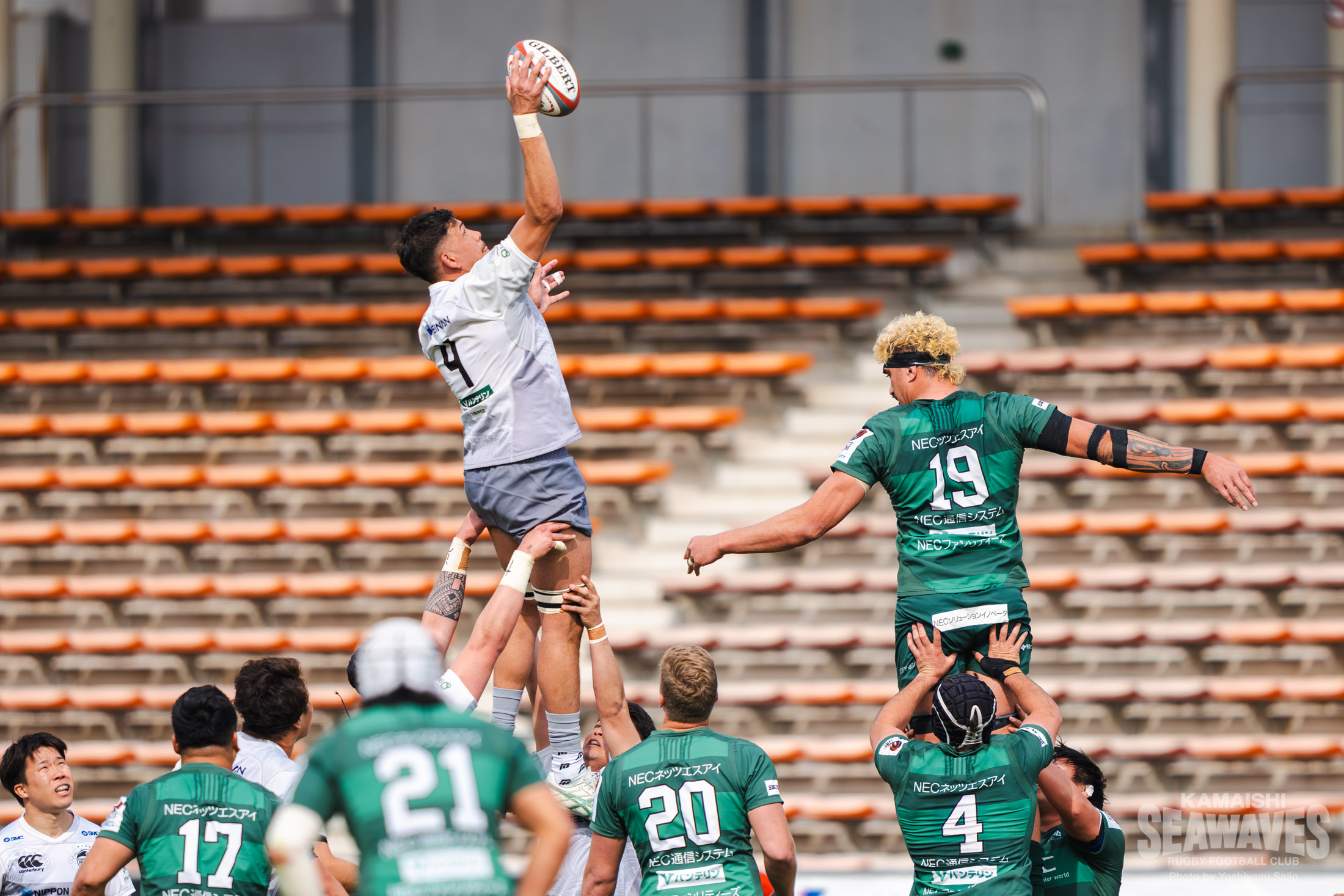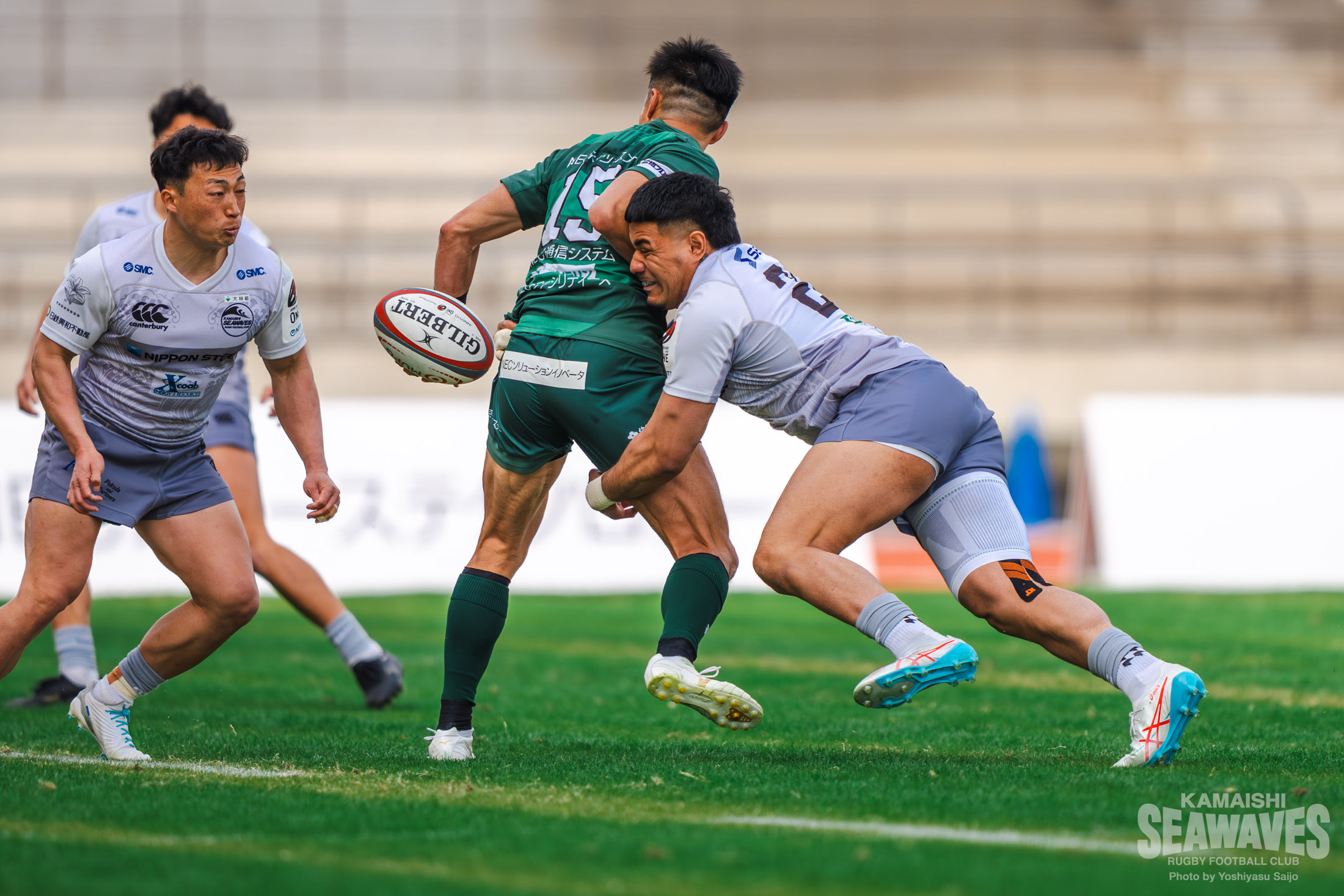 ジャパンラグビーリーグワン2025-26ディビジョン2第5節が3月22日(日)、柏の葉公園総合競技場で行われ、日本製鉄釜石シーウェイブス(以下、釜石SW)はNECグリーンロケッツ東葛(以下、GR東葛)と対戦しました。延期となっていた一戦は約1カ月半の時間を経て実現しましたが、釜石SWは14―54で敗れました。