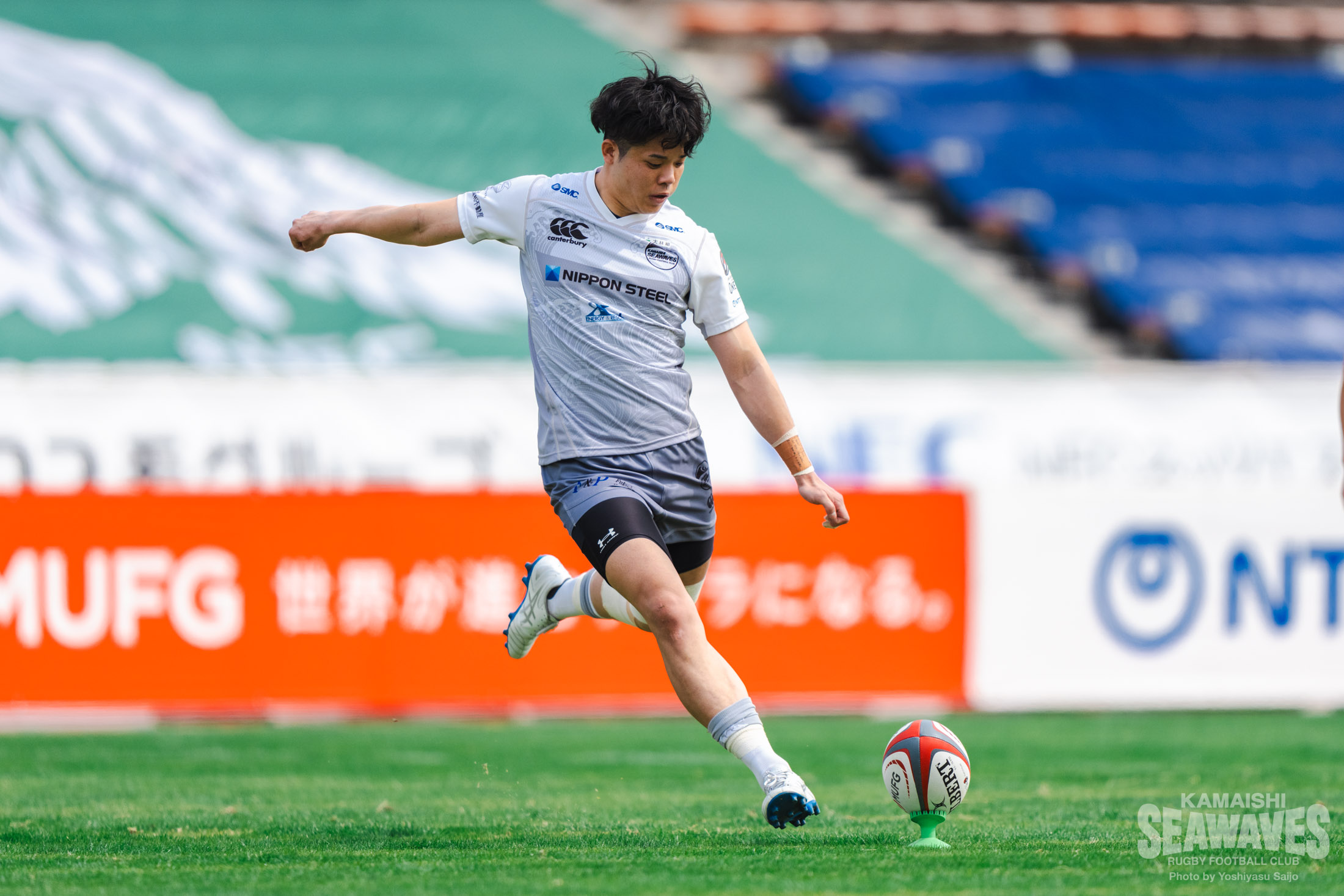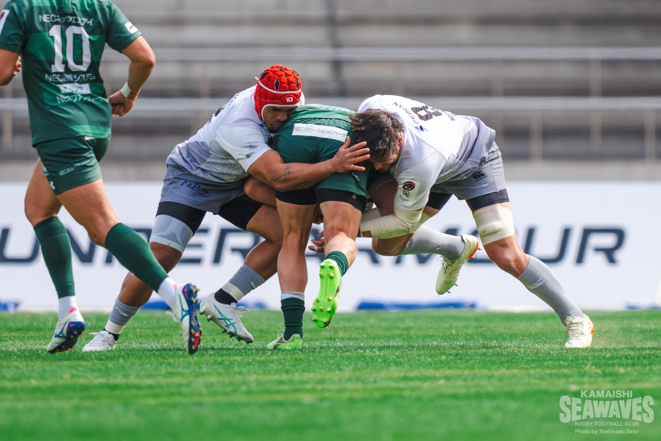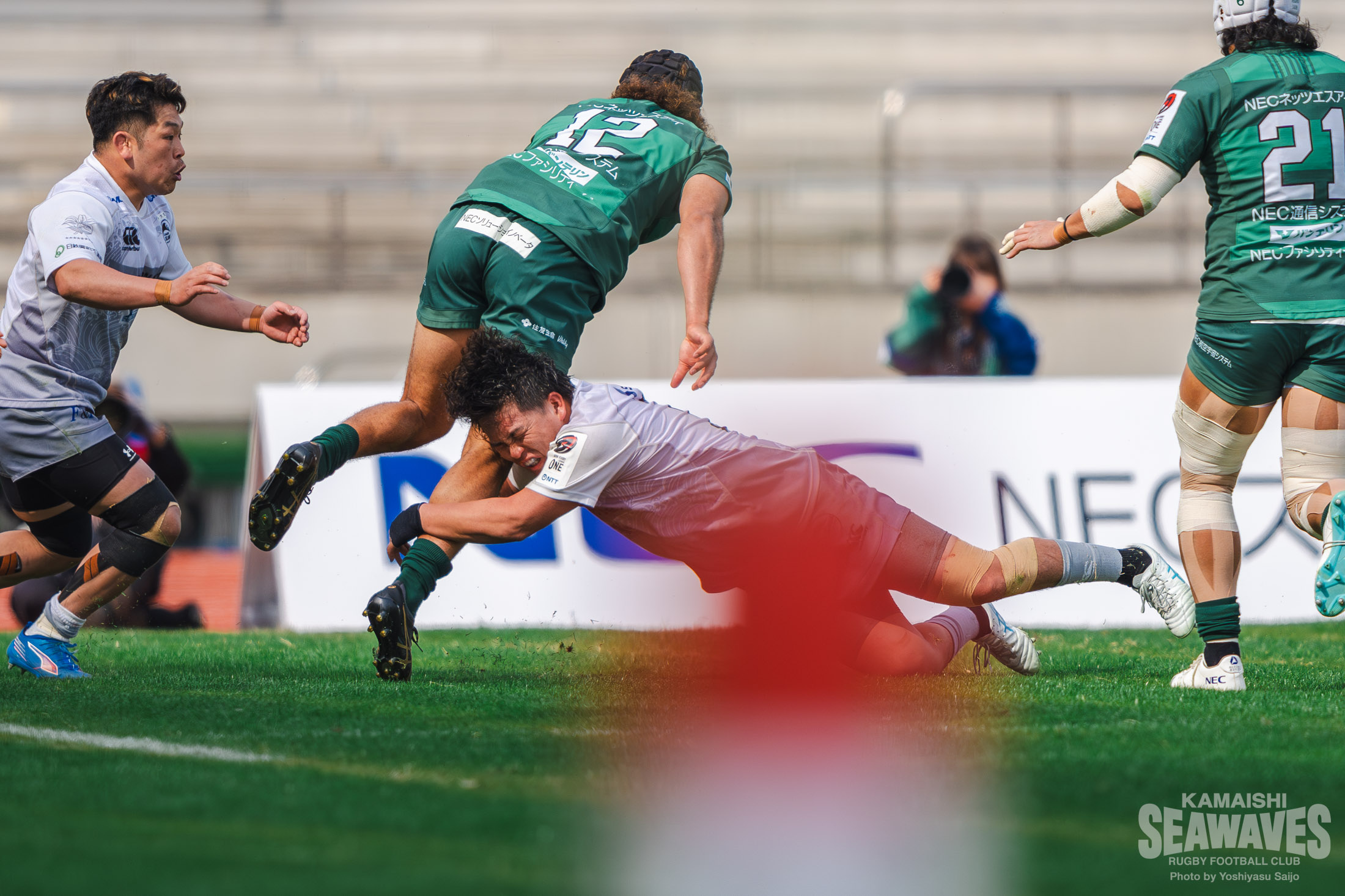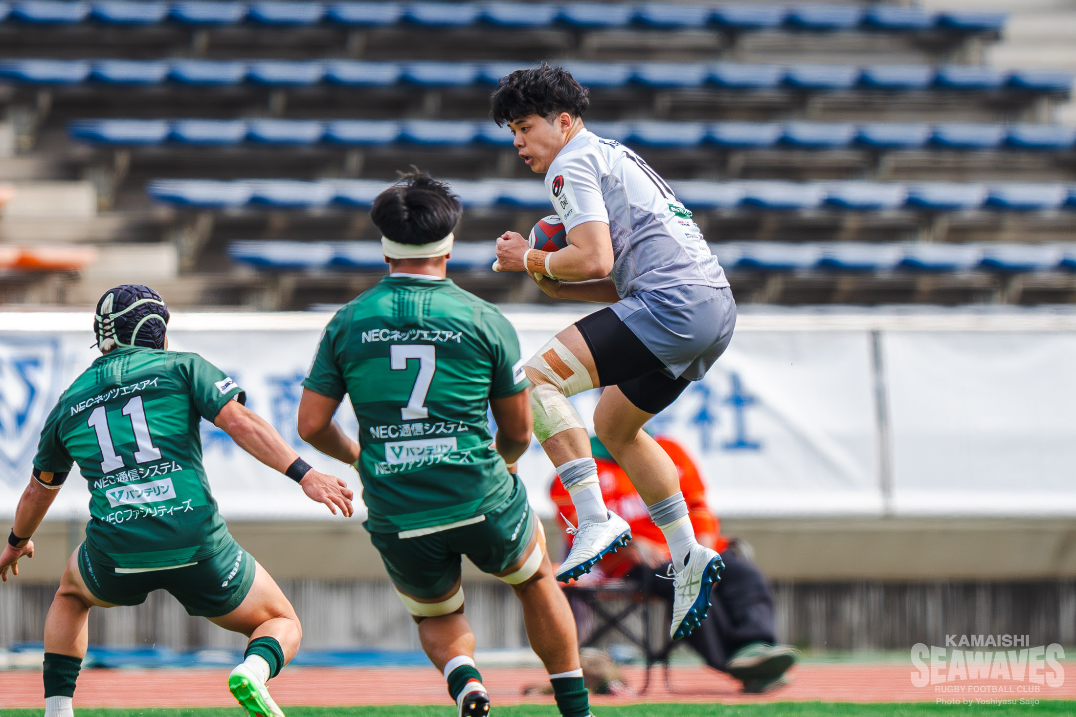 ジャパンラグビーリーグワン2025-26ディビジョン2第5節が3月22日(日)、柏の葉公園総合競技場で行われ、日本製鉄釜石シーウェイブス(以下、釜石SW)はNECグリーンロケッツ東葛(以下、GR東葛)と対戦しました。延期となっていた一戦は約1カ月半の時間を経て実現しましたが、釜石SWは14―54で敗れました。