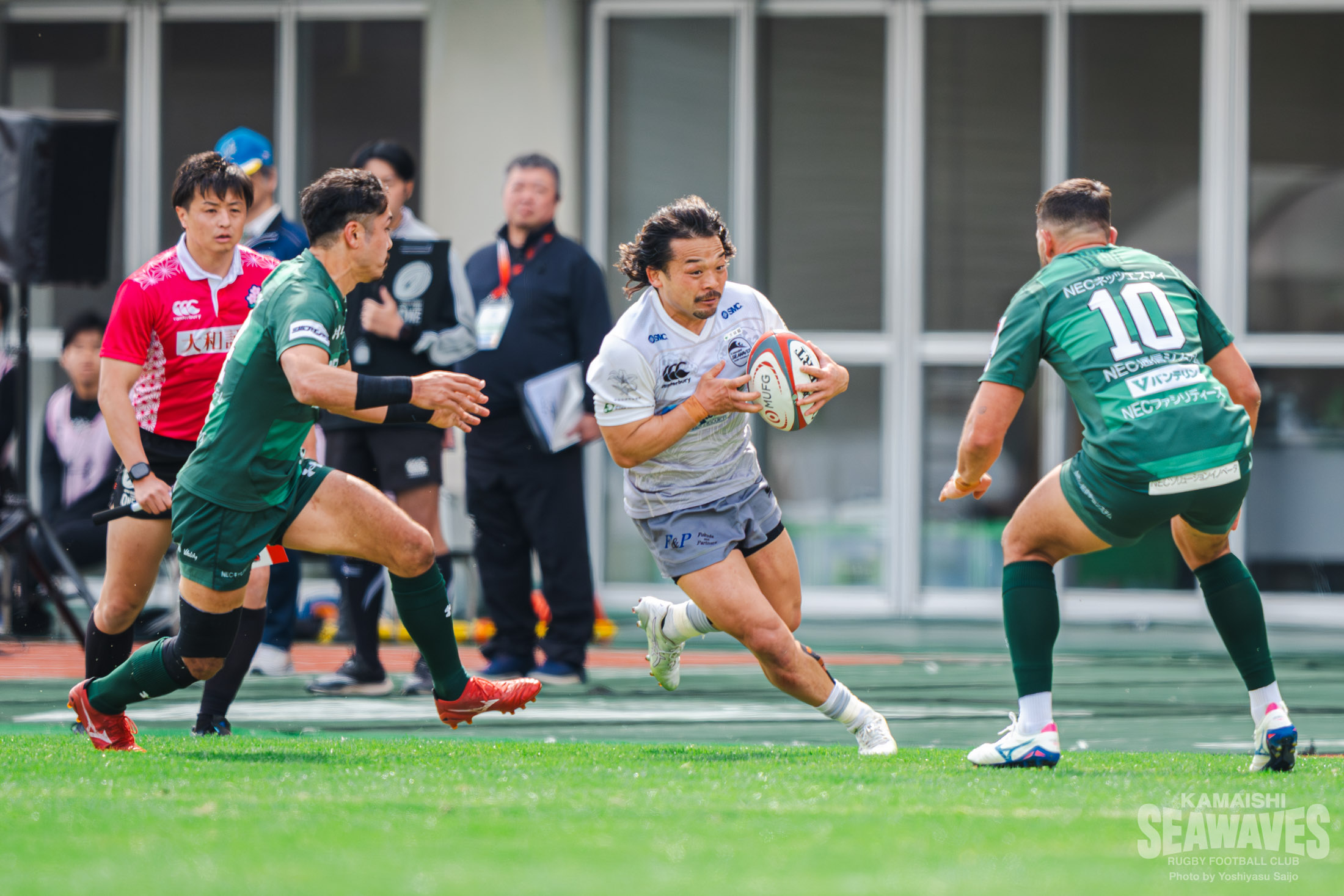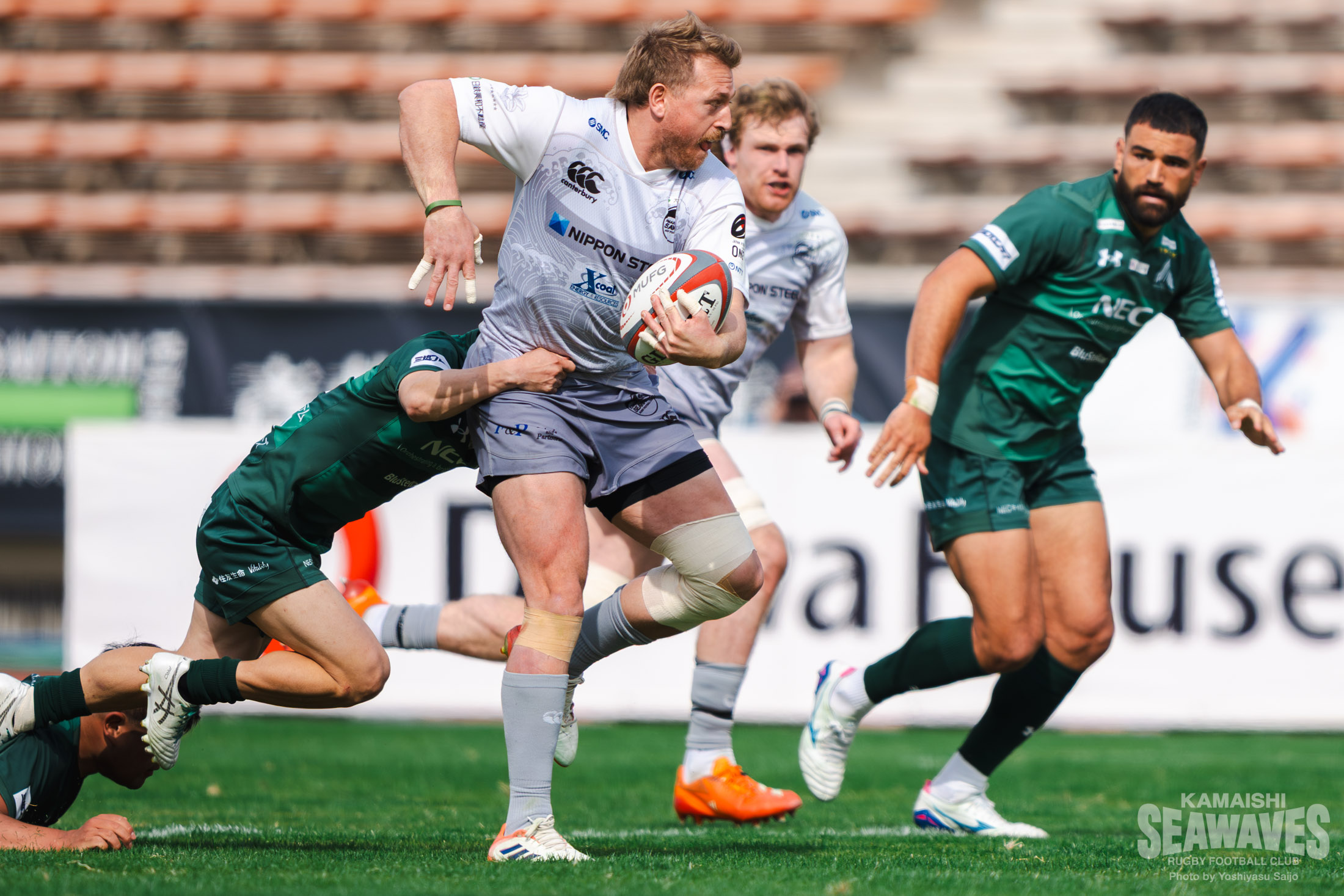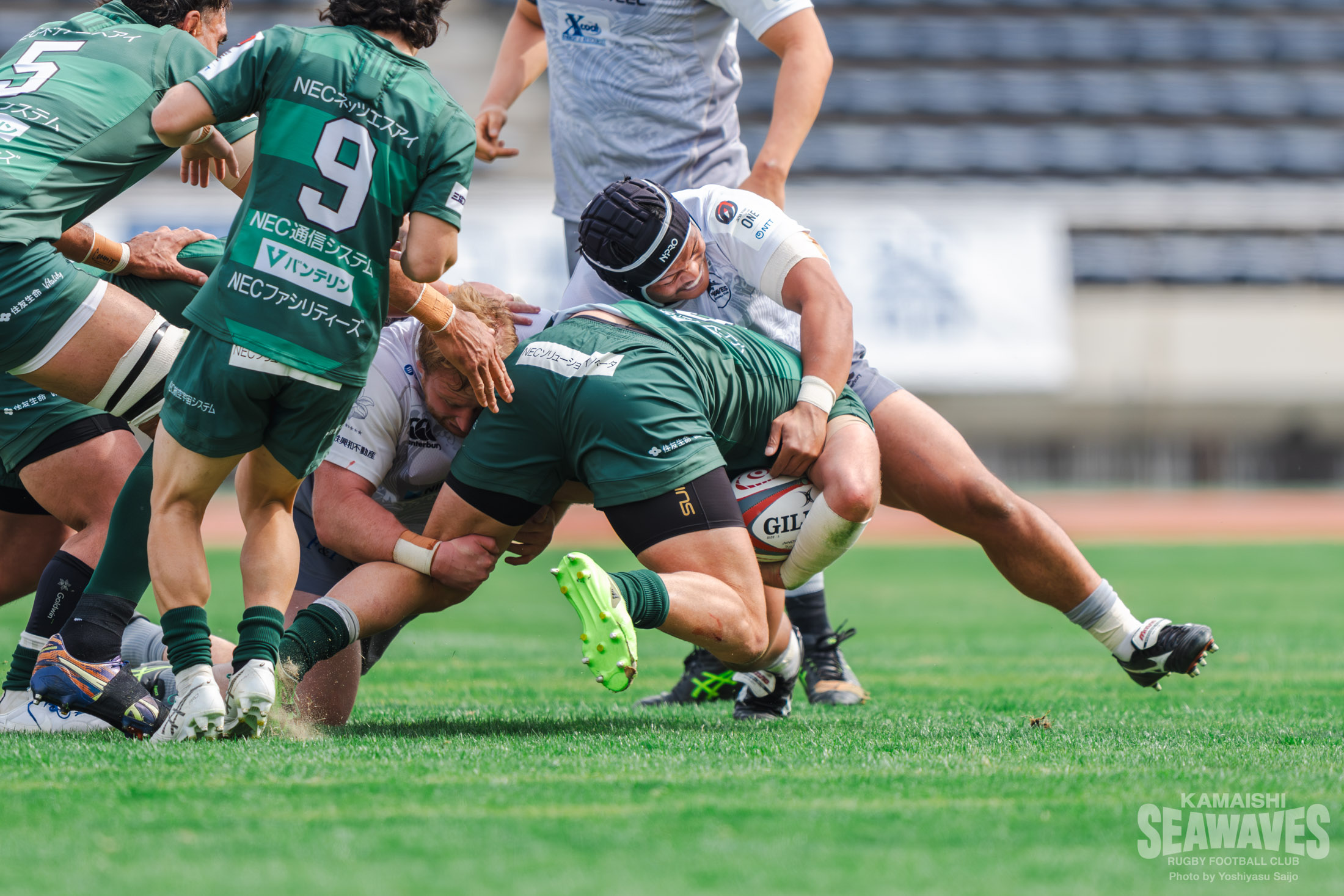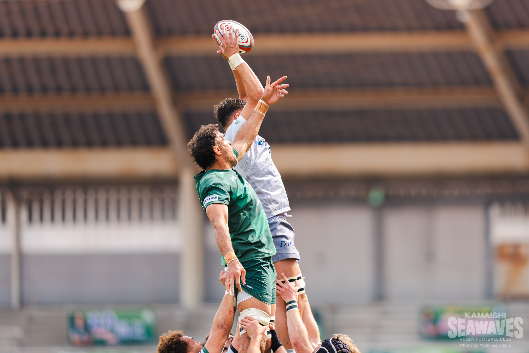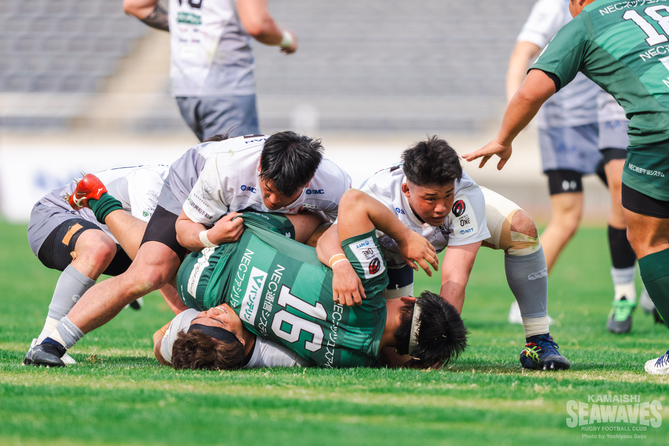 ジャパンラグビーリーグワン2025-26ディビジョン2第5節が3月22日(日)、柏の葉公園総合競技場で行われ、日本製鉄釜石シーウェイブス(以下、釜石SW)はNECグリーンロケッツ東葛(以下、GR東葛)と対戦しました。延期となっていた一戦は約1カ月半の時間を経て実現しましたが、釜石SWは14―54で敗れました。