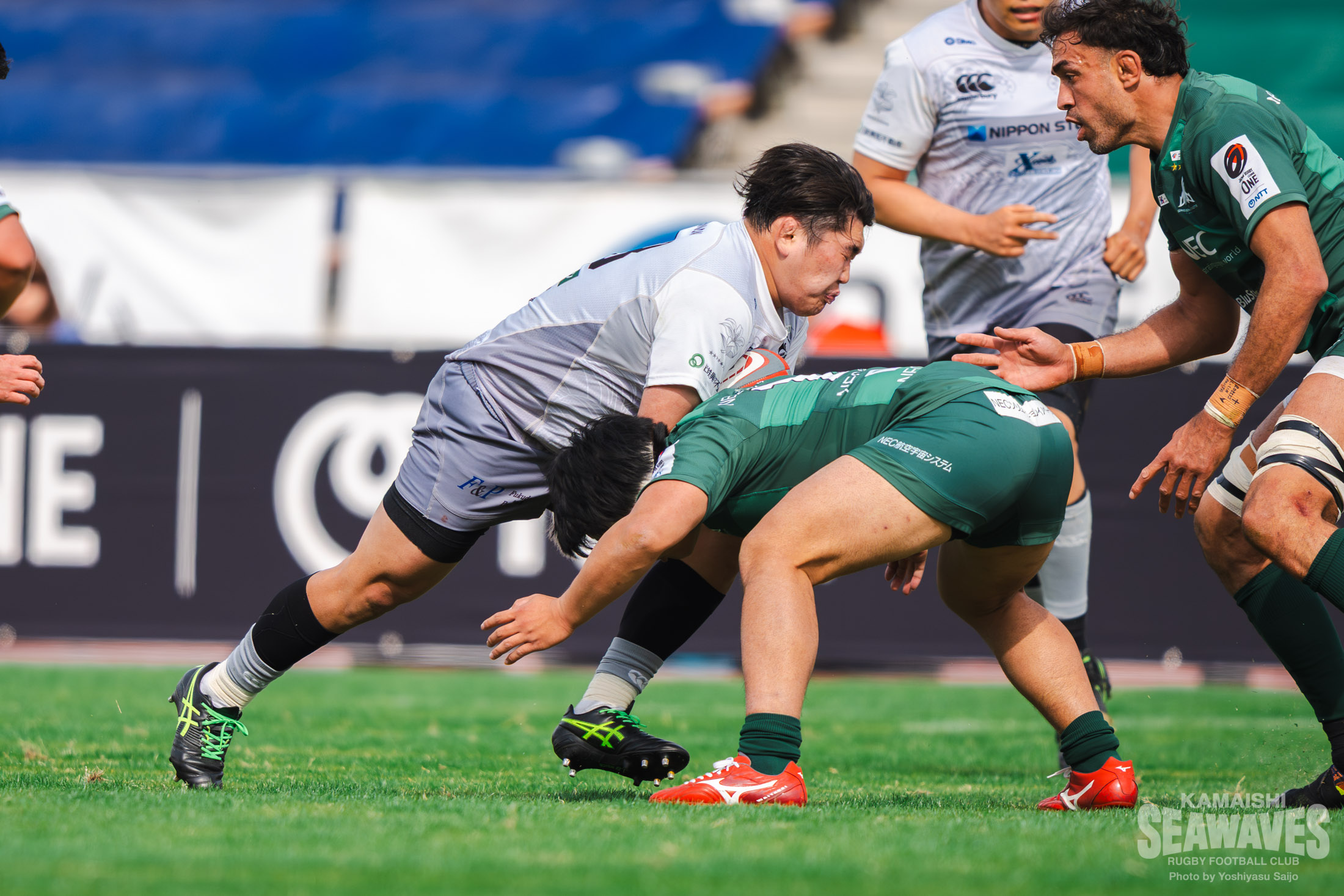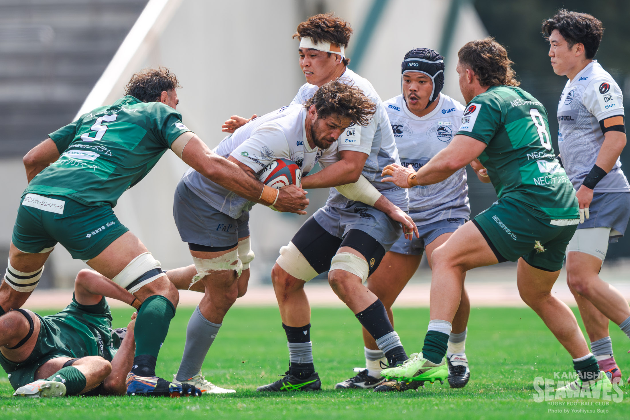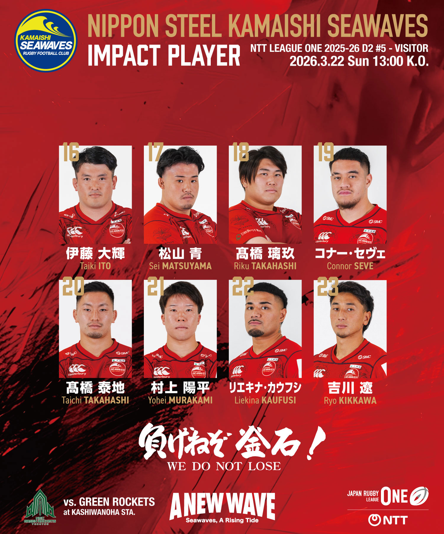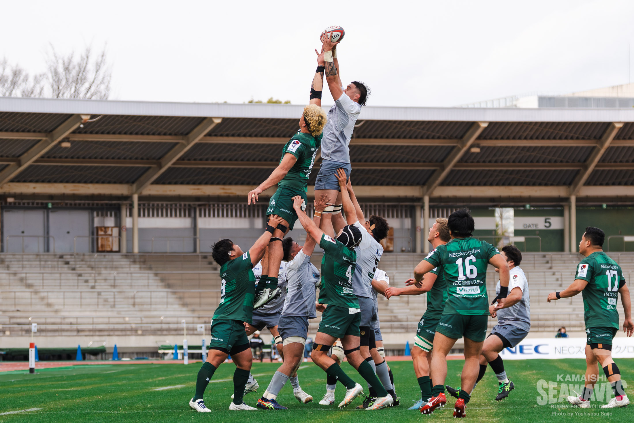 ジャパンラグビーリーグワン2025-26ディビジョン2第5節が3月22日(日)、柏の葉公園総合競技場で行われ、日本製鉄釜石シーウェイブス(以下、釜石SW)はNECグリーンロケッツ東葛(以下、GR東葛)と対戦しました。延期となっていた一戦は約1カ月半の時間を経て実現しましたが、釜石SWは14―54で敗れました。