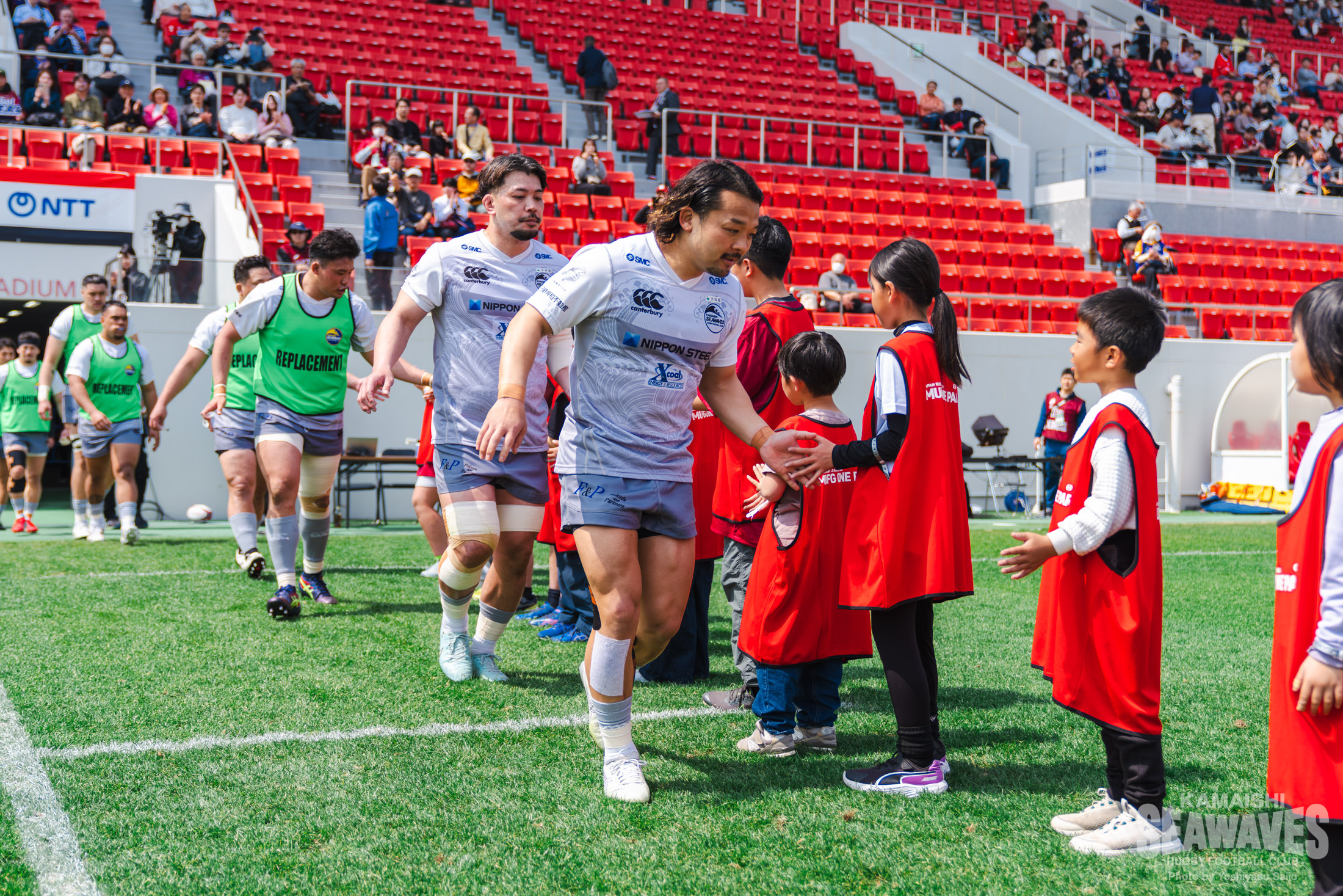 花園Lとの前回対戦は、3月7日(土)、釜石鵜住居復興スタジアムで行われた東日本大震災復興祈念試合において釜石SWが勝利を収めたのは記憶に新しいところです。今季2度目の対戦となる今節は、釜石SWが6連戦の後半に差し掛かる中で迎えたビジターゲーム。首位を走る花園Lの本拠地に乗り込み、再びの勝利を狙う一戦となりました。会場には5306人の観客が詰め掛け、春の陽気に包まれた青空の下、12時ちょうどにキックオフを迎えました。