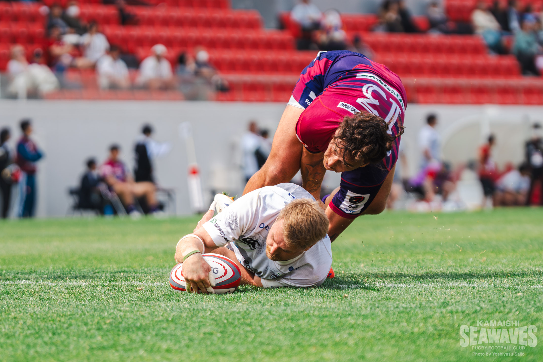さらに後半6分、自陣でのターンオーバーから反撃を試みますが、パスミスを相手に拾われるとカウンターから独走トライを許してしまいます。点差が一気に広がり、勝ち星が遠のく苦しい展開とされてしまいます。