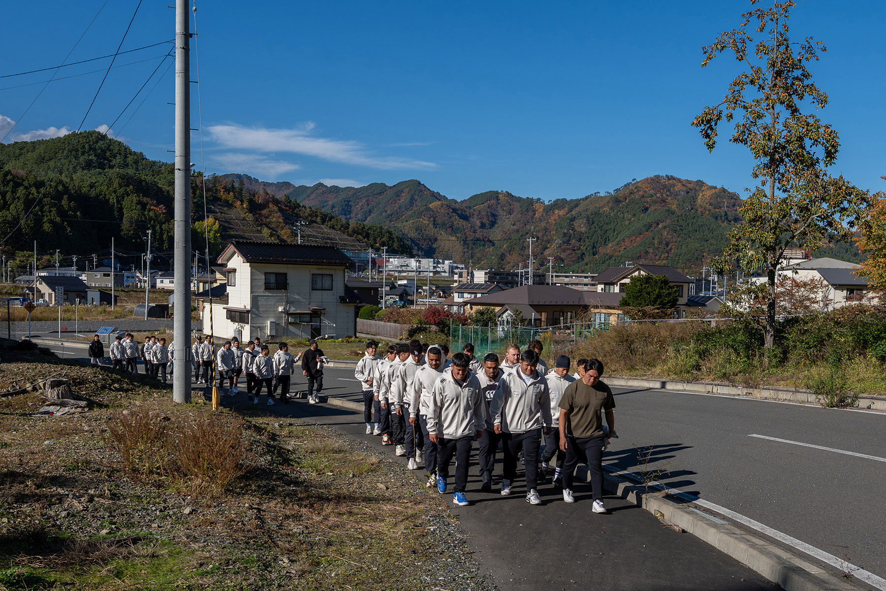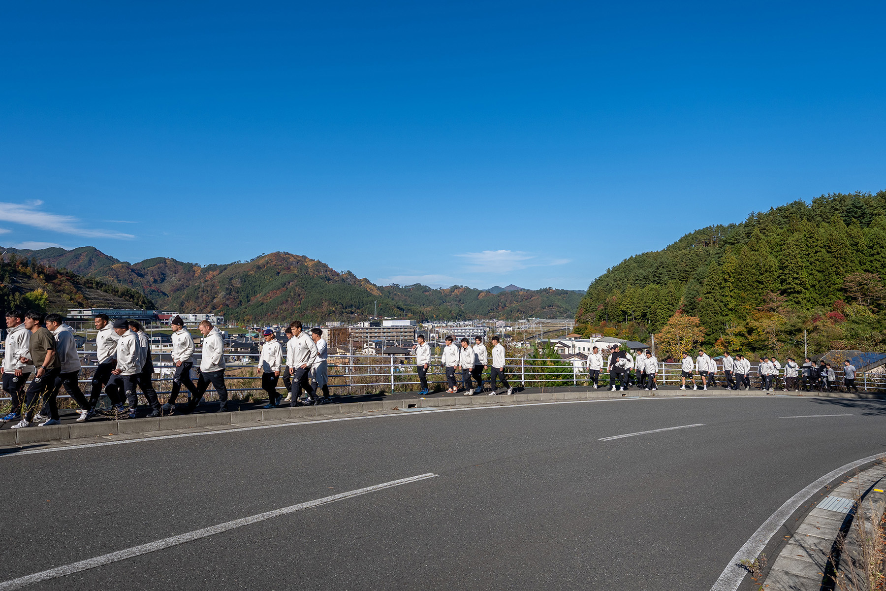 万が一、釜石市鵜住居での試合時に津波注意報・警報が発令された際は、事務局・運営スタッフが観客誘導を行い、選手やチームスタッフは「率先避難者」という役割に変わります。今回の避難訓練では、その役割や避難経路を全員で確認する時間となりました。