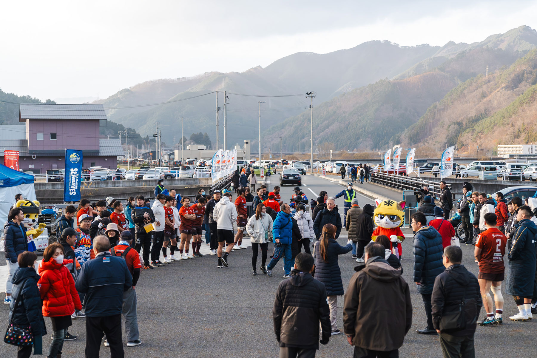 試合終了後、試合に出場した選手も参加し、ファンの皆さんをお見送りします。