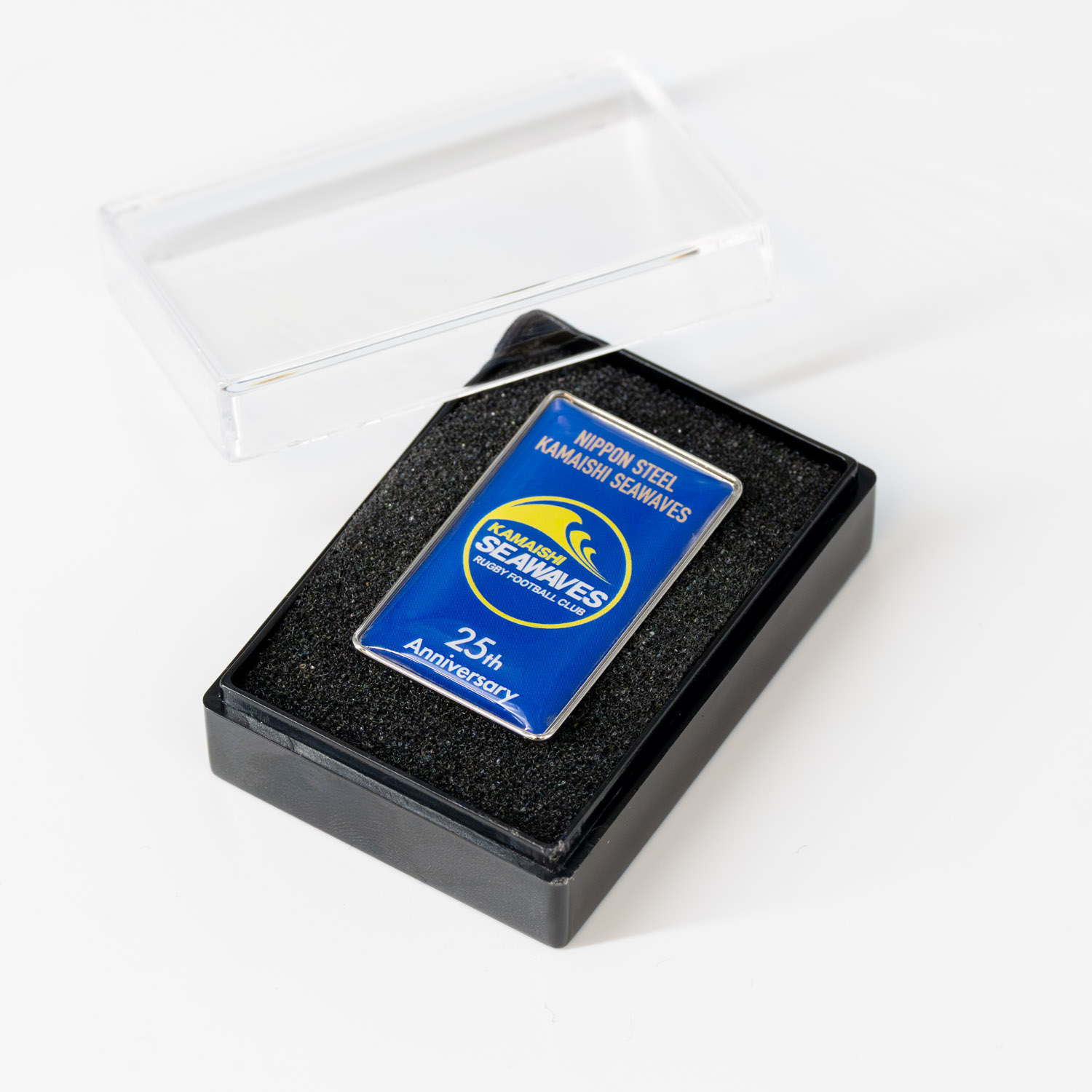 クラブエンブレムと25周年記念ロゴが入ったビンバッジ。ジャケットのラペルや襟、バッグや小物、キャップなど、お気に入りの位置に取り付けることができます。ケース付きなので保管もしやすく、プレゼントにもおすすめです。