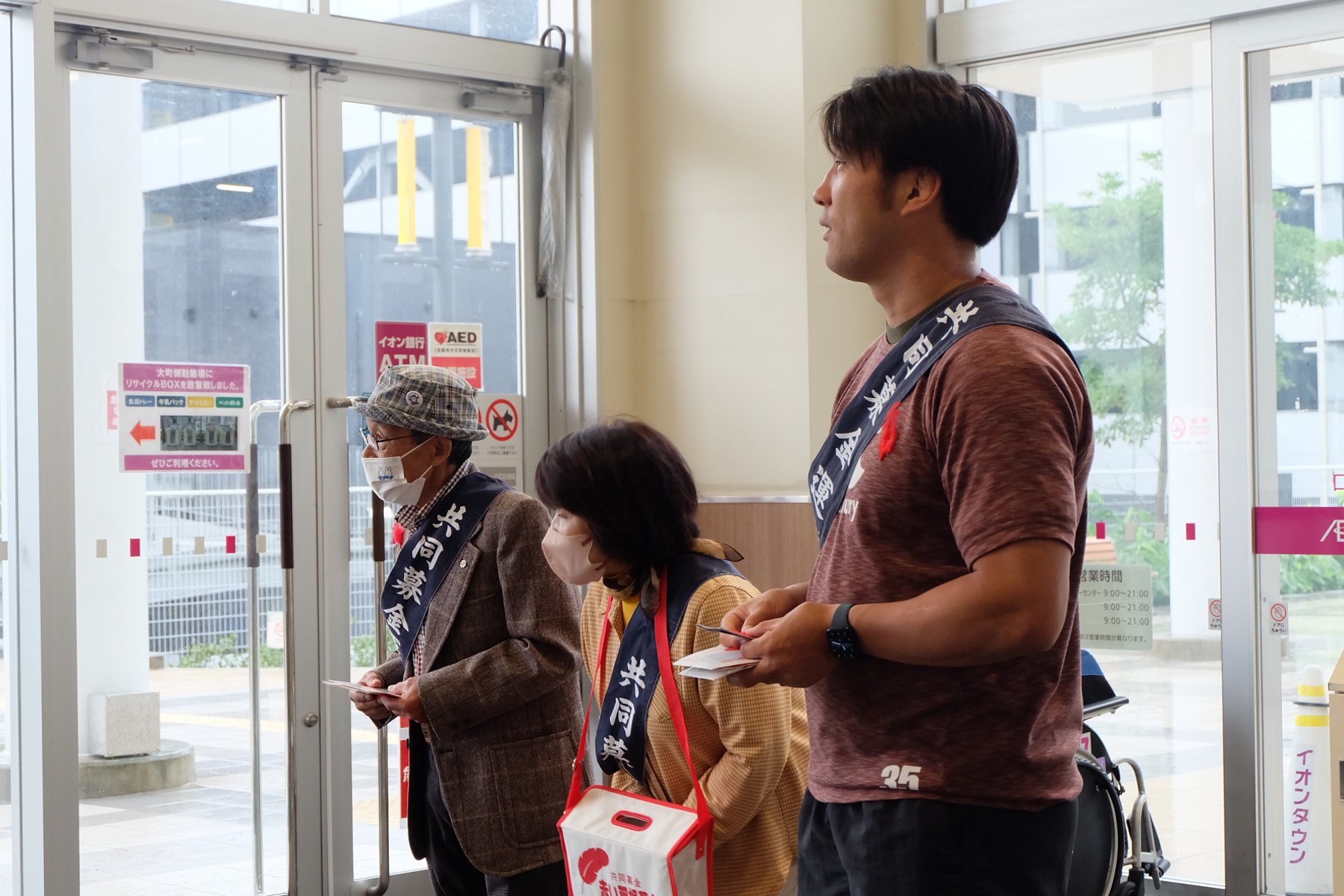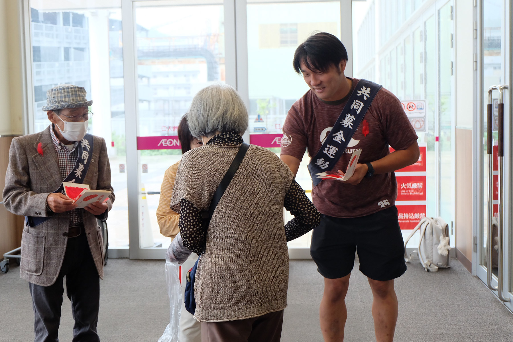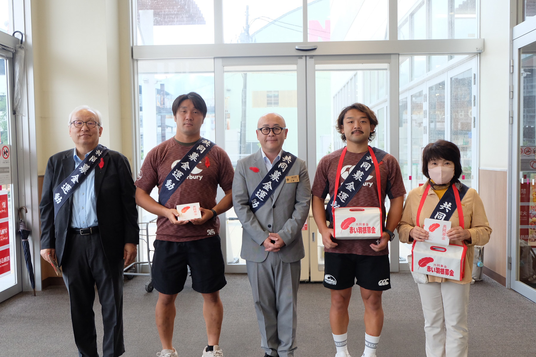 10月1日(水)、第79回「赤い羽根共同募金運動」の全国一斉スタートに合わせてイオンタウン釜石にて街頭募金活動に武者大輔選手と小野航大選手、事務局スタッフが参加し、釜石市の小野共市長や、釜石市共同募金委員会、釜石市社会福祉協議会の皆さんと募金の呼び掛けをおこないました。