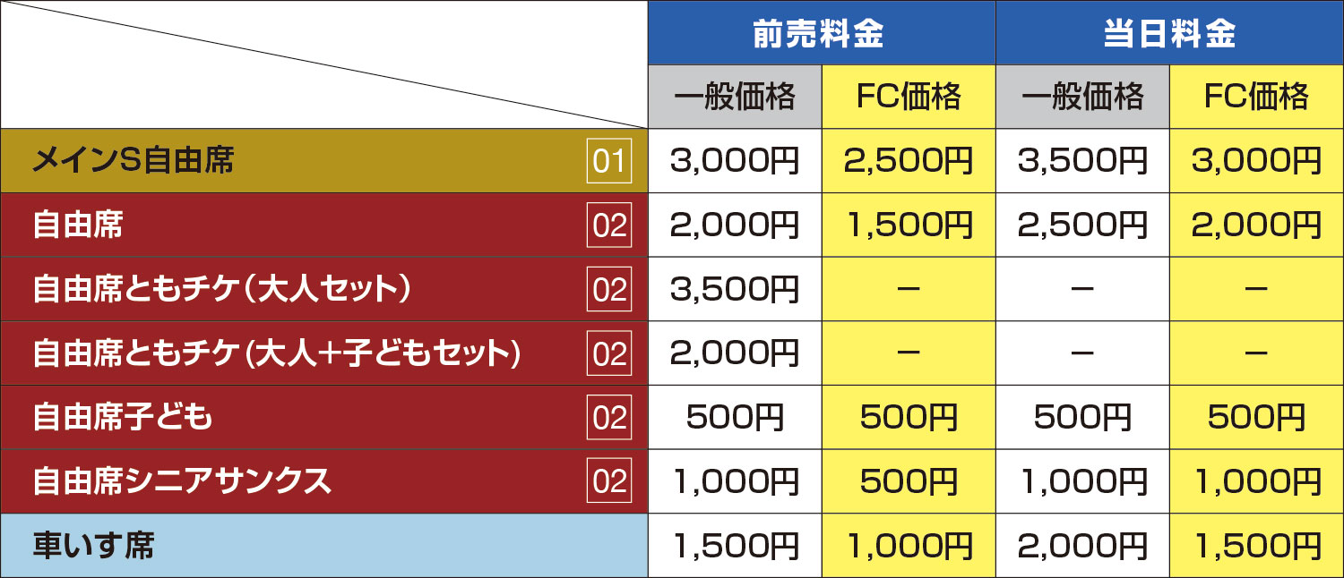 | 開催節 | 開催日 | 会場 | 対戦相手 | ファンクラブ 先行販売 |
