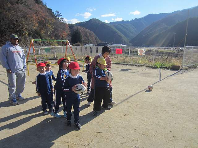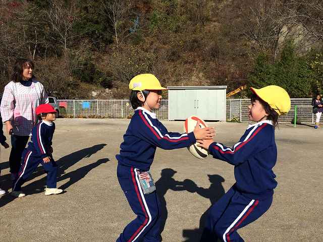 本日(11/18)、鵜住居幼稚園にて、園児とラグビーボールを使って交流を行いました。 SWからは、ラタ選手、マヘ選手、タウファ選手の3名に参加して頂きました。 約1時間、ボール回しや鬼ごっこなどをして楽しく交流する事ができました。 最後には園児お手製のメダルを頂きました。鵜住居幼稚園の皆さんありがとうございました。 タウファ選手からのコメント 今日は園児とラグビーボールを使って遊ぶ事ができて、とても有意義な時間を過ごす事ができました。 園児の笑顔を見れて良かったです。試合の疲れも吹っ飛びました。 私の子供ももうすぐ2歳になります。みんな私の子供より足も速く元気で驚きました。子供は元気が一番です。 今日は楽しい時間をありがとうございました。