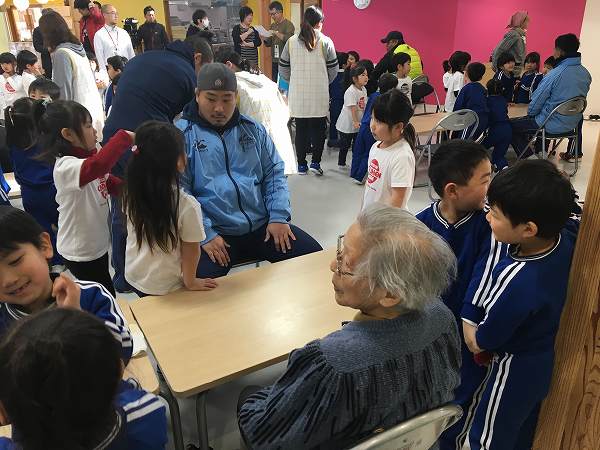 ---------------------------------------------------------------------------------------------------- 1月10日(木)、かまいしこども園にてみずき団子作りが行われ、マヘトゥビ普及担当、田邉篤選手、森雄祐選手、星野将利選手が参加いたしました。 かまいしこども園の園児や大槌保育園の園児、そして地域の方も参加してのイベントとなりました。